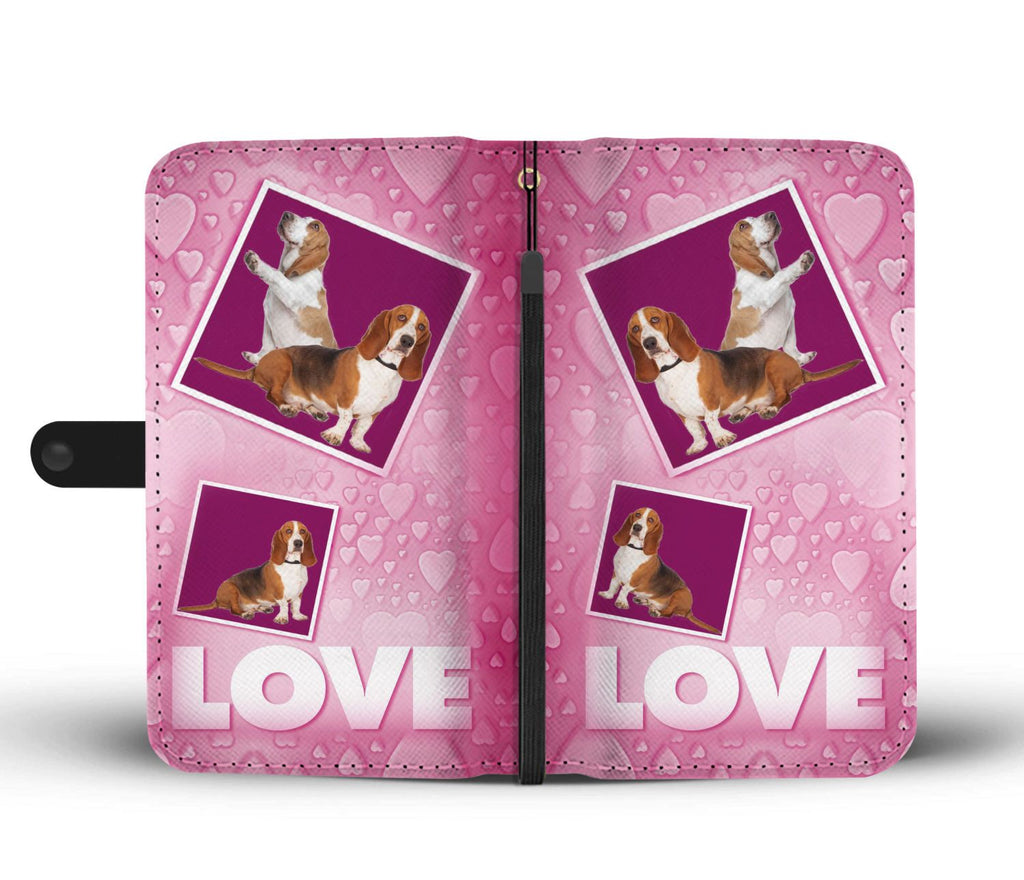 Basset Hound Dog with Love Print Wallet Case-Free Shipping