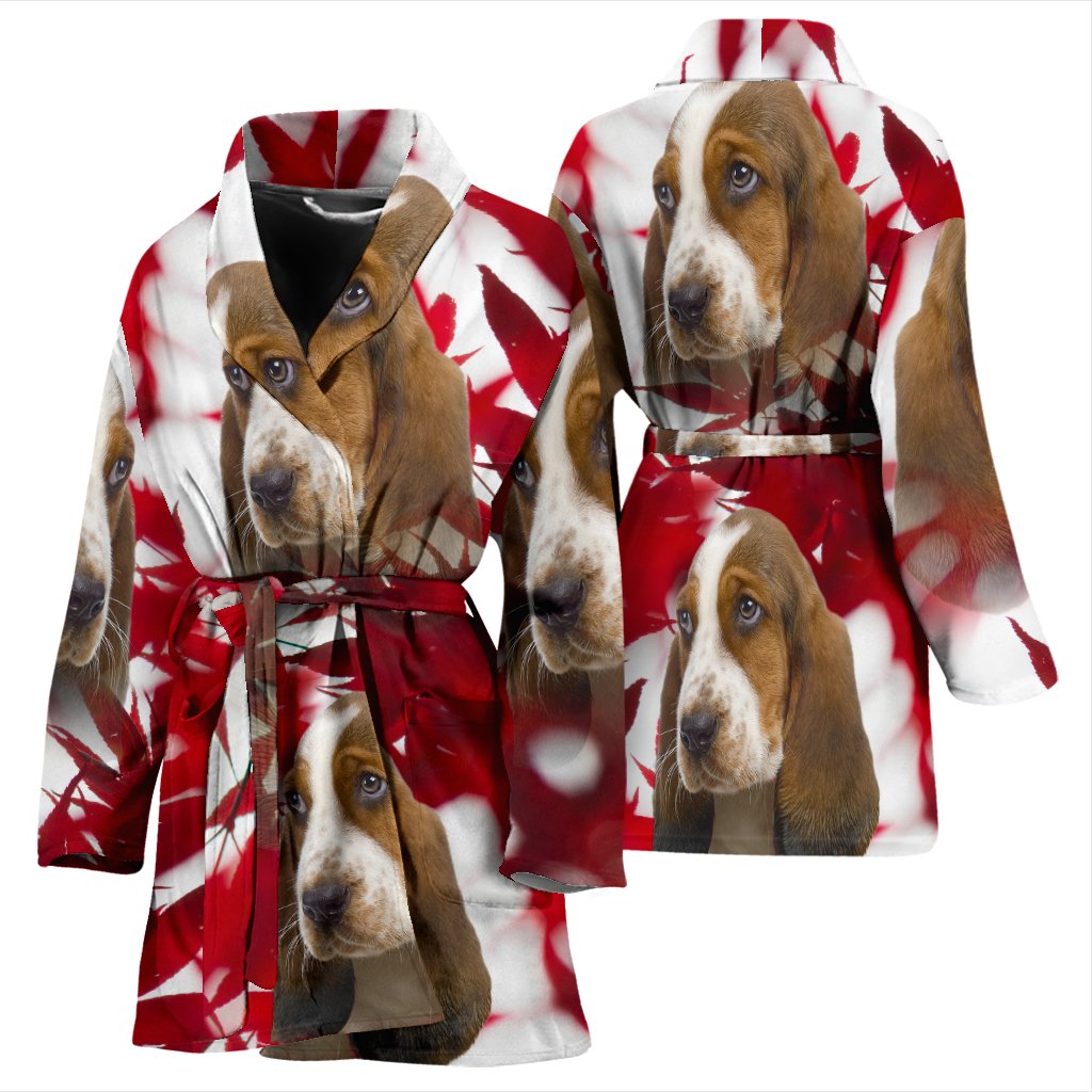 Basset Hound On Red Print Women's Bath Robe-Free Shipping