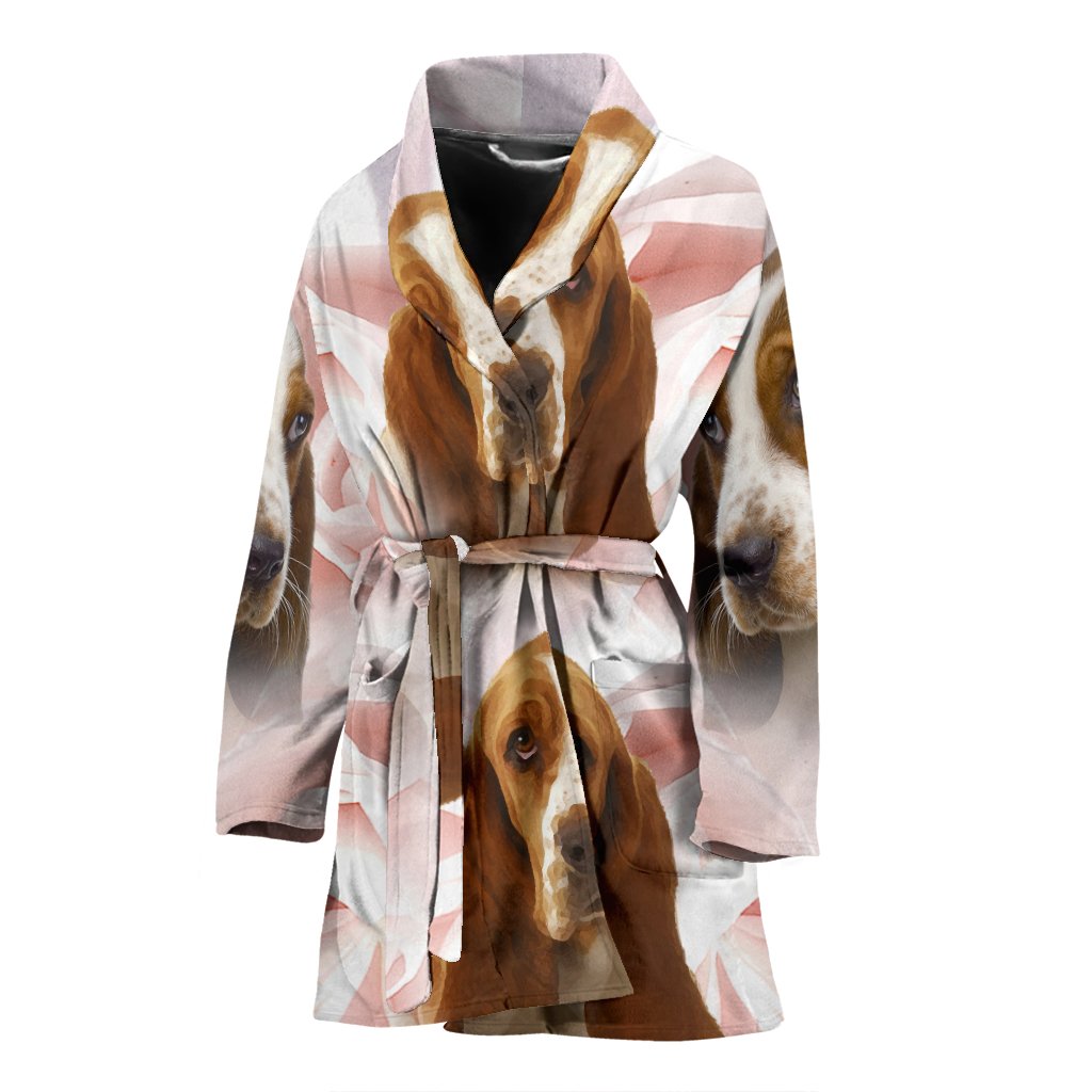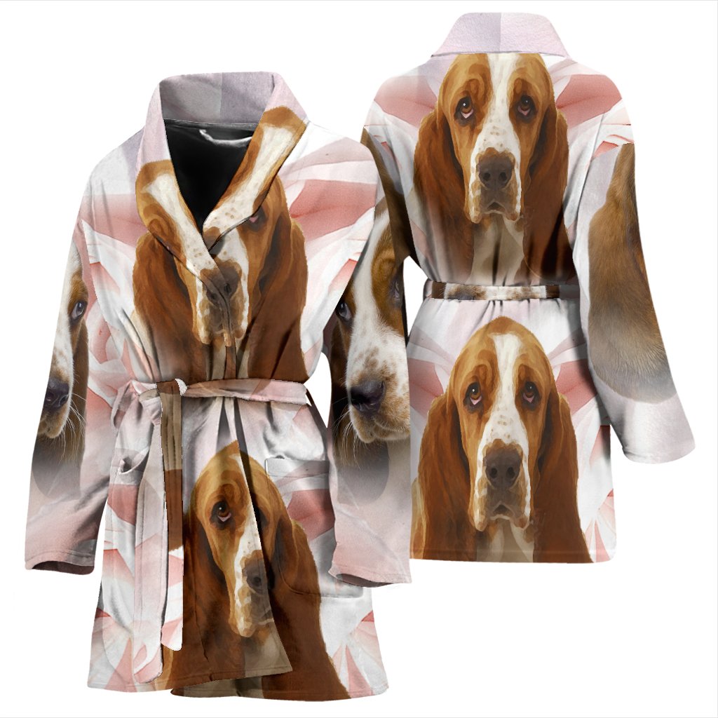 Basset Hound On White Print Women's Bath Robe-Free Shipping