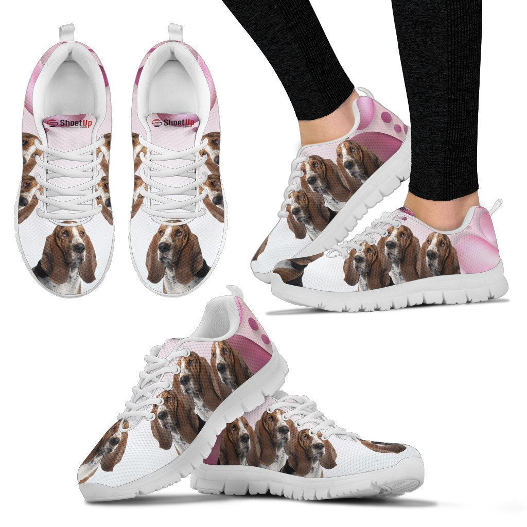 Basset Hound Pink White Print Running Shoes For Women-Free Shipping