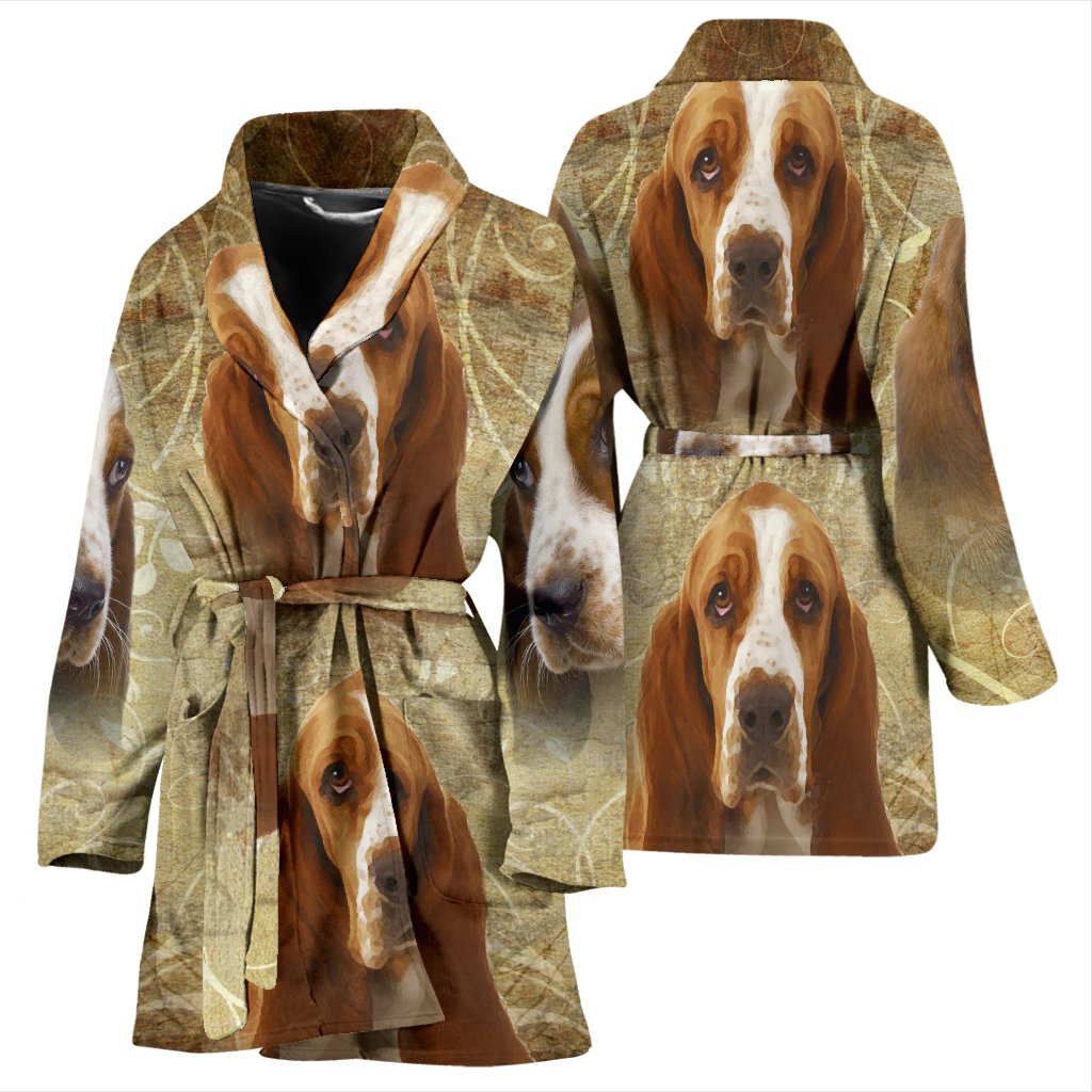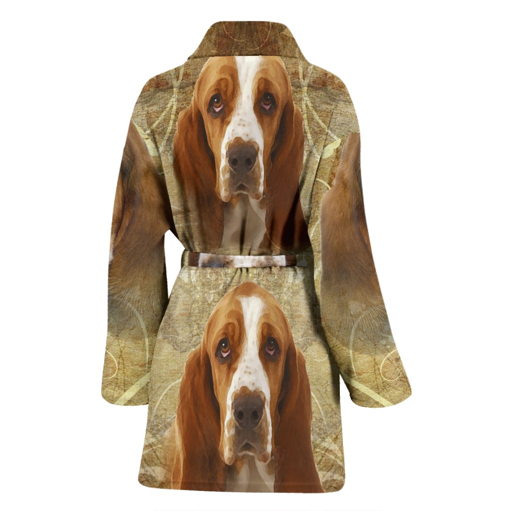 Cute Basset Hound On White Print Women's Bath Robe-Free Shipping