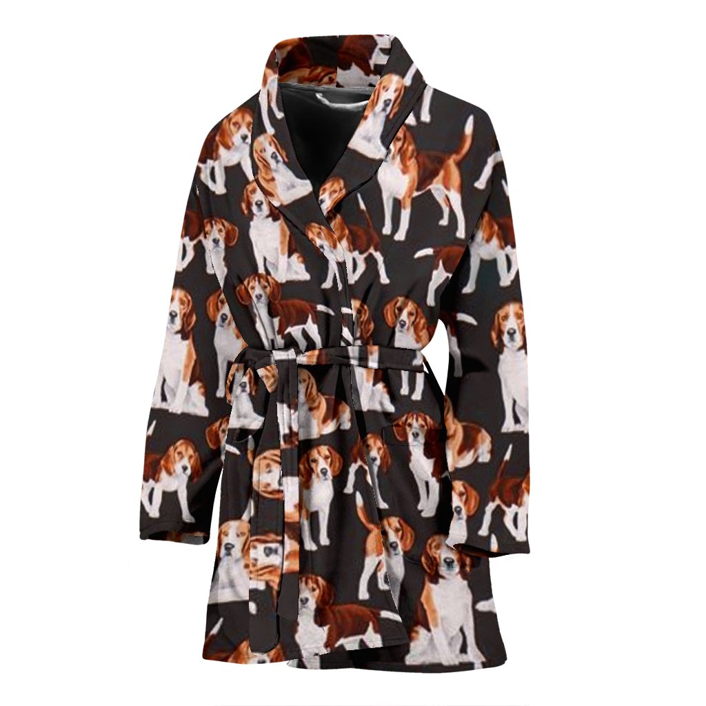 Beagle Dog In Lots Print Women's Bath Robe-Free Shipping