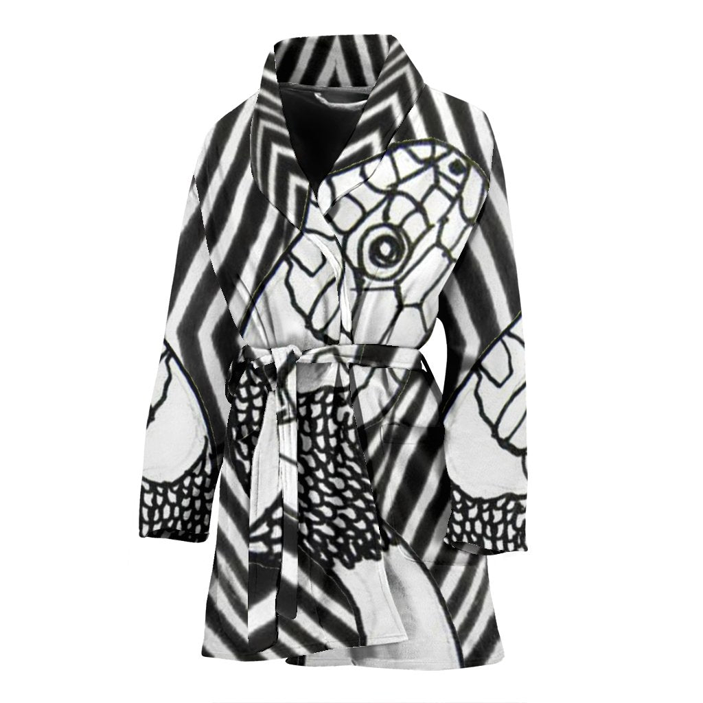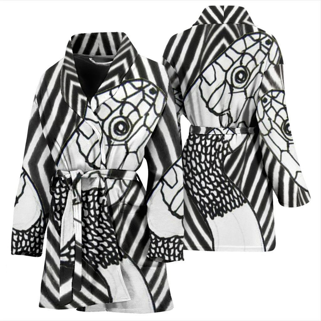 Blank & White Snake Print Women's Bath Robe-Free Shipping