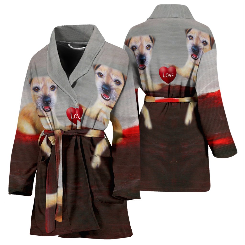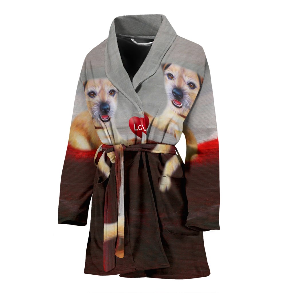Border Terrier Love Print Women's Bath Robe-Free Shipping