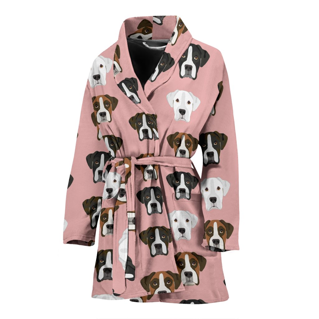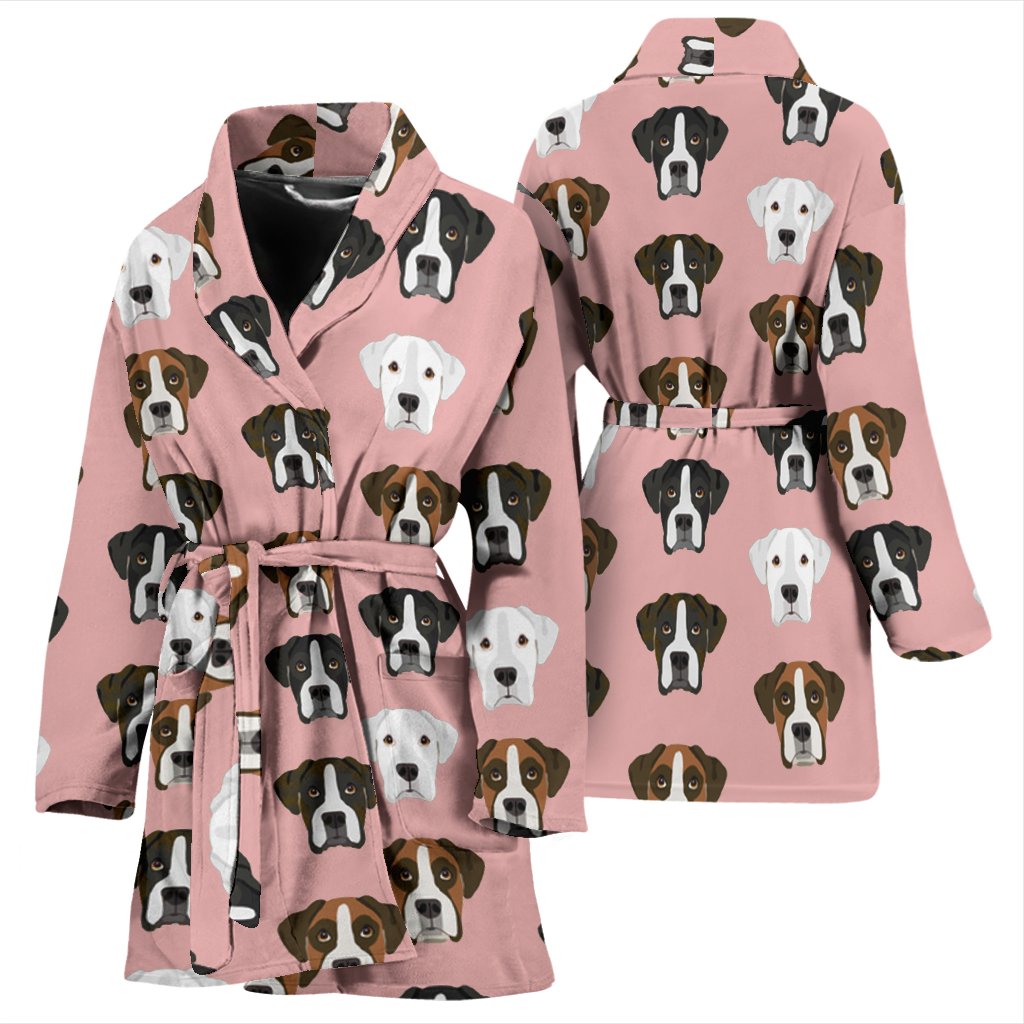 Boxer Dog Pattern Print Women's Bath Robe-Free Shipping