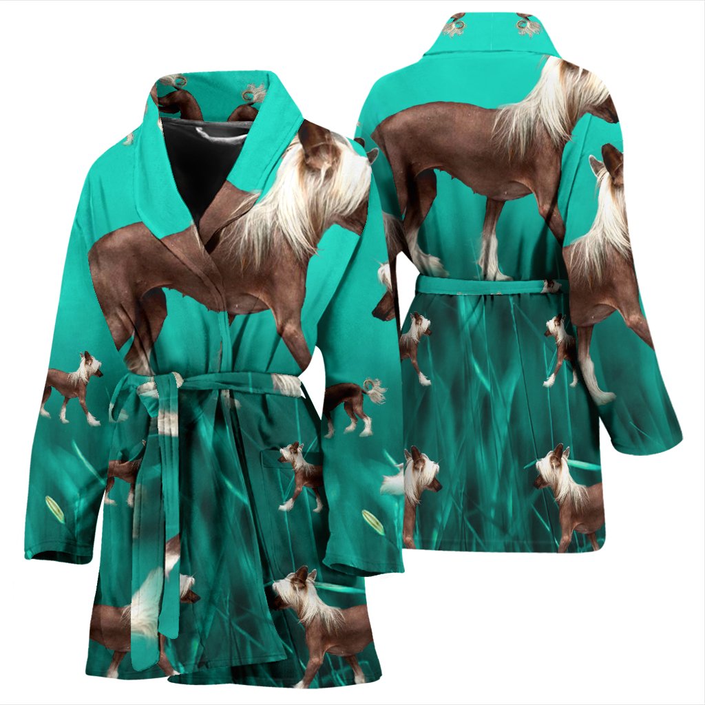 Chinese Creasted Dog Print Women's Bath Robe-Free Shipping