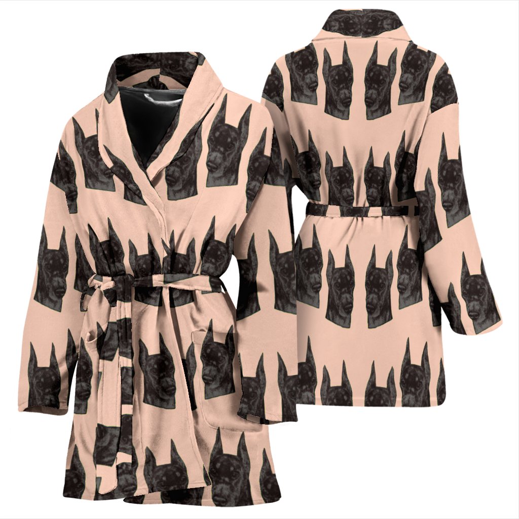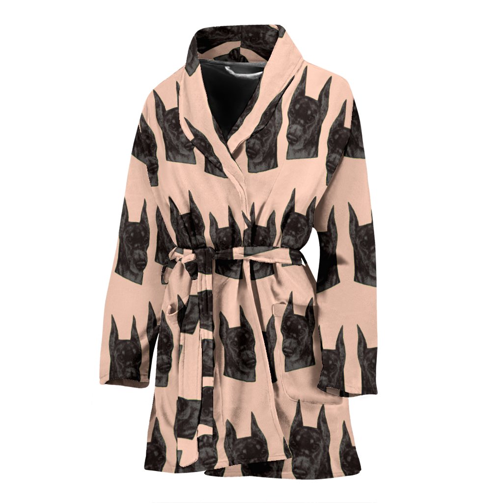 Doberman Dog Pattern Print Women's Bath Robe-Free Shipping