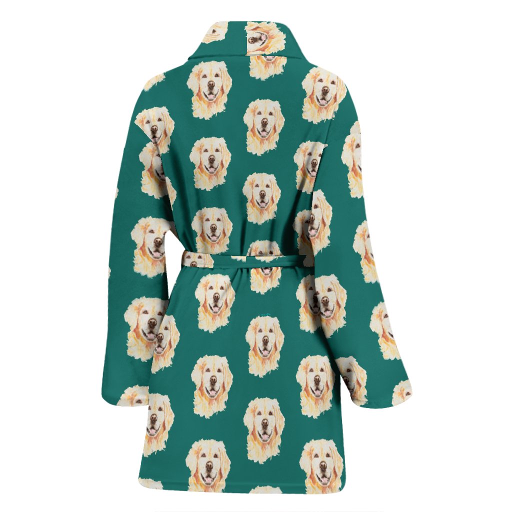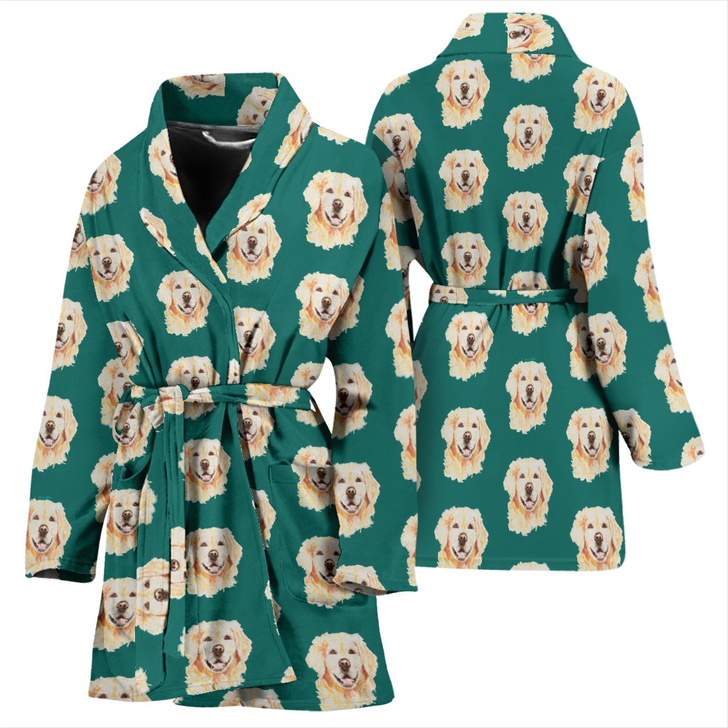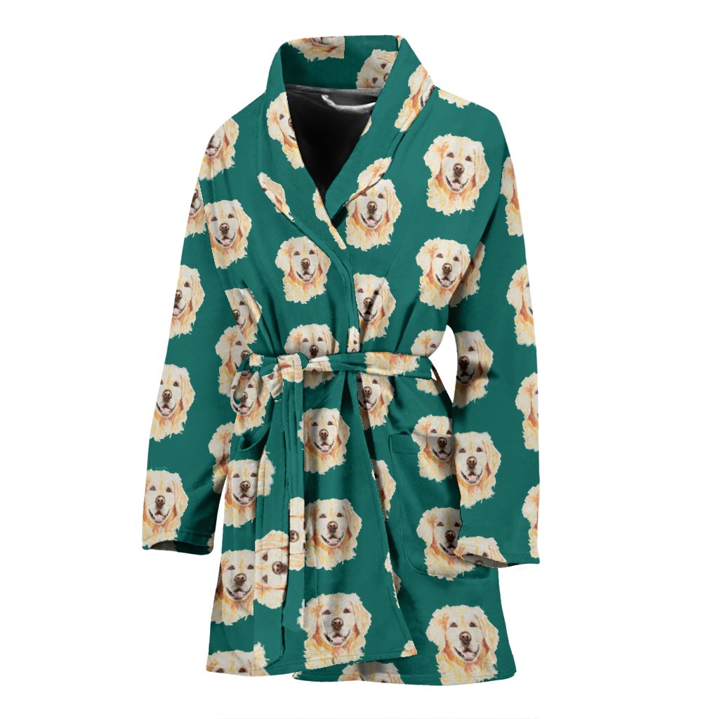 Golden Retriever Dog Pattern Print Women's Bath Robe-Free Shipping