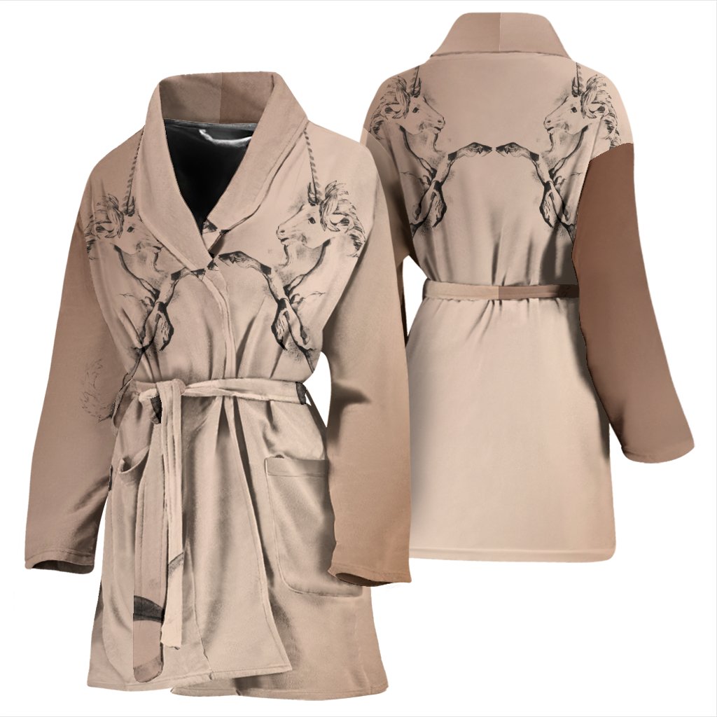 Jumping Unicorn Print Women's Bath Robe-Free Shipping