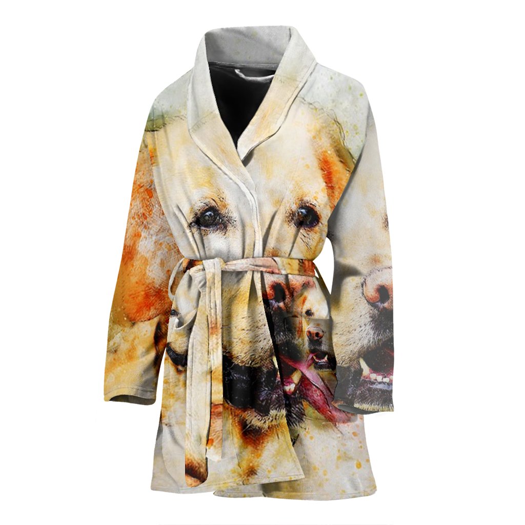 Labrador Dog Art Print Women's Bath Robe-Free Shipping