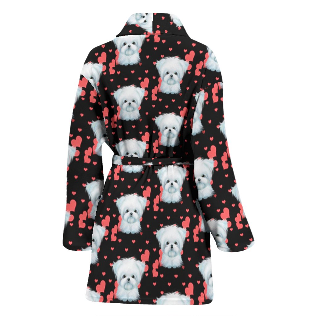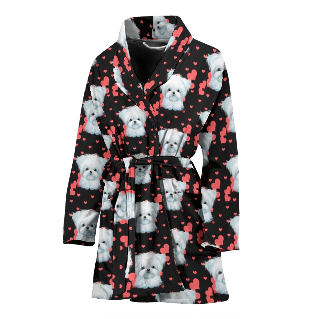 Maltese Dog Heart Pattern Print Women's Bath Robe-Free Shipping