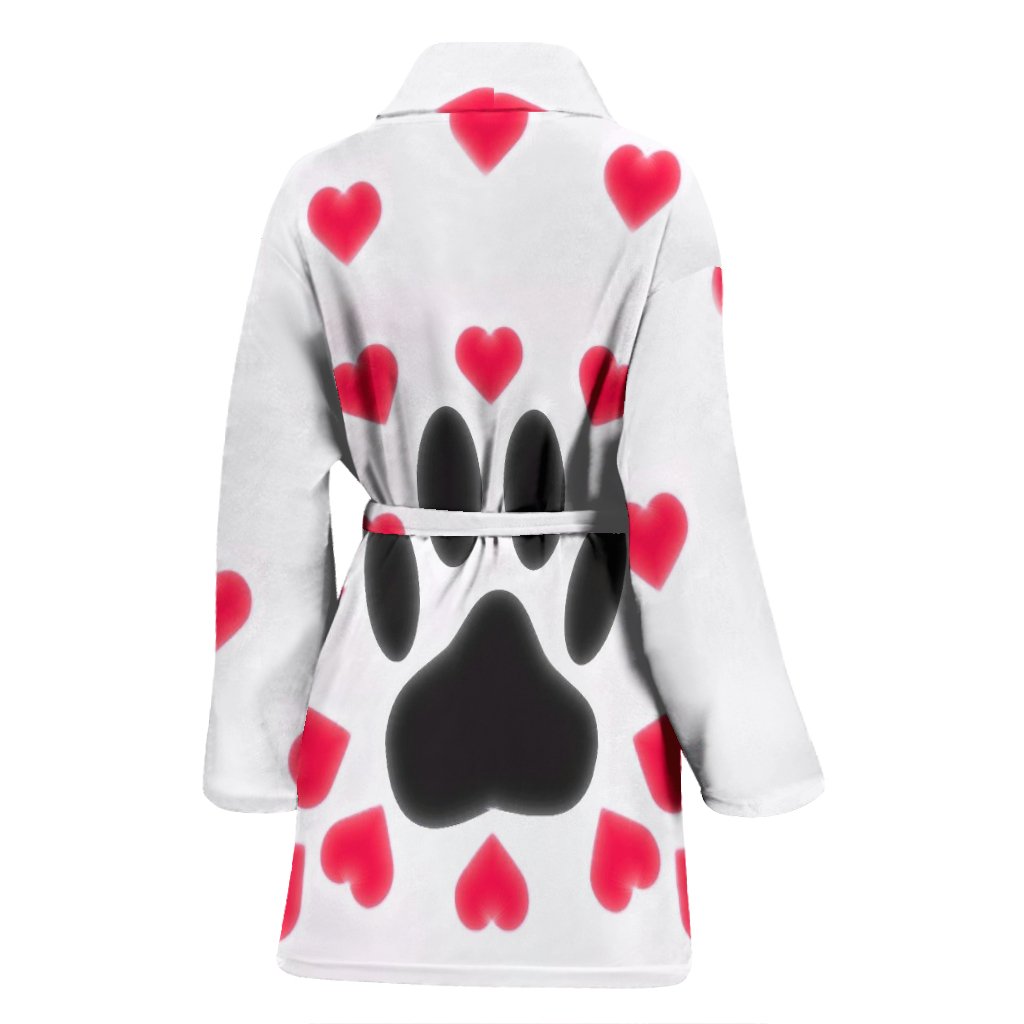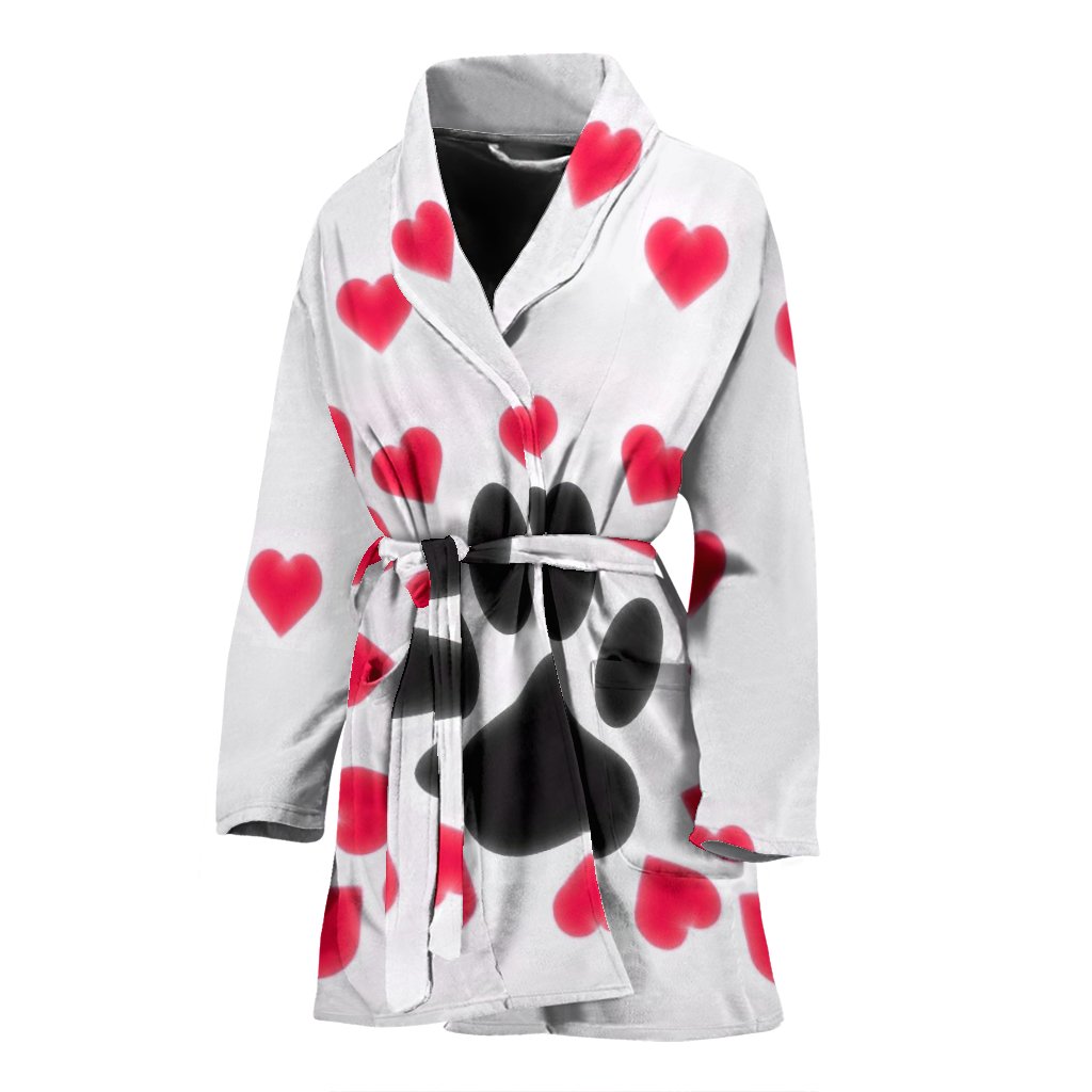 Paws Print With heart Women's Bath Robe-Free Shipping