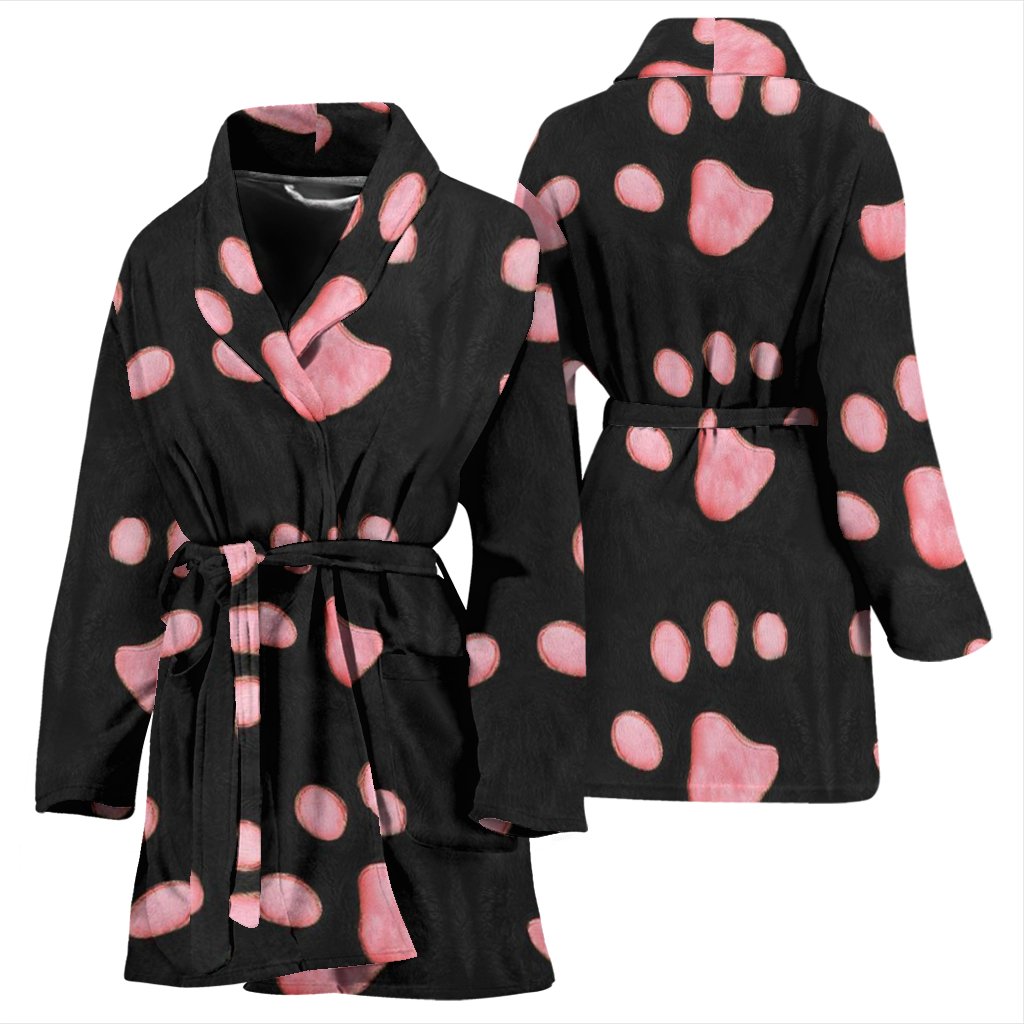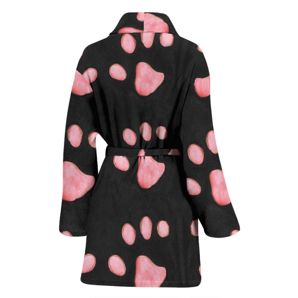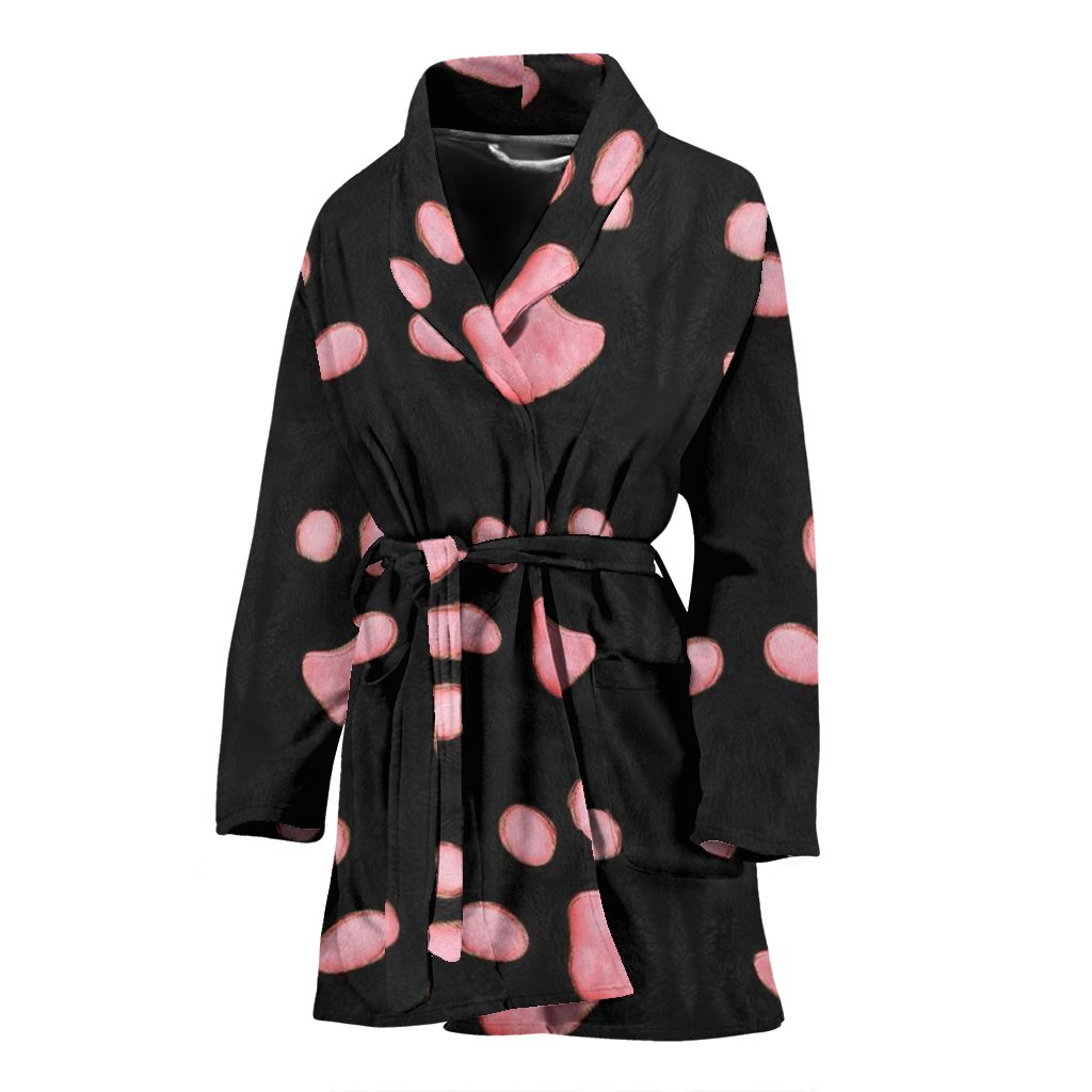 Pink Paws Print Women's Bath Robe-Free Shipping