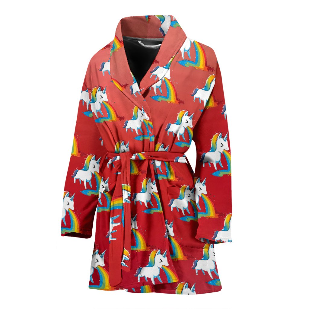 Rainbow Unicorn Patterns Print Women's Bath Robe-Free Shipping