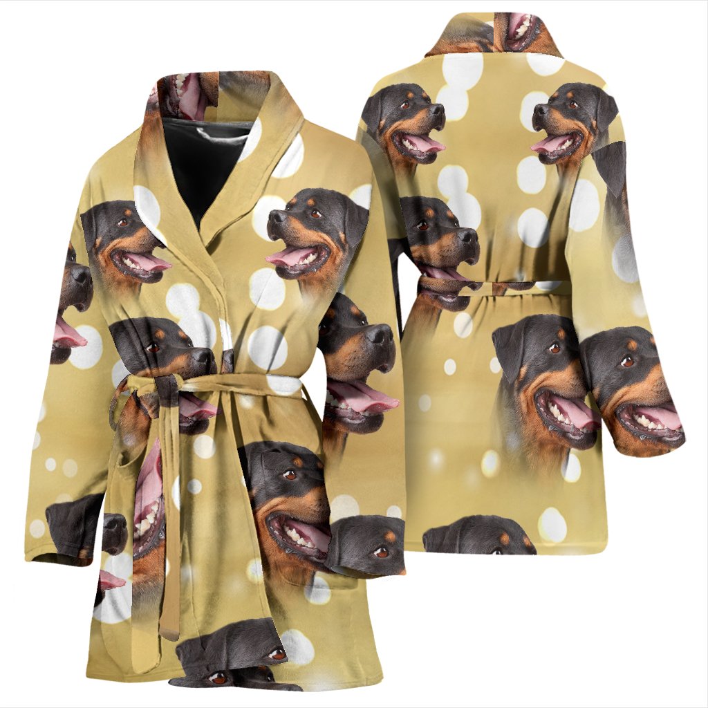 Rottweiler Dog Print Women's Bath Robe-Free Shipping