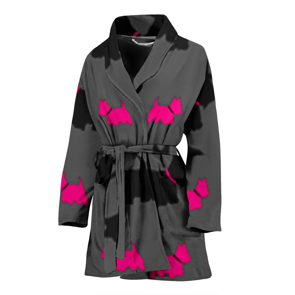 Scottish Terrier Print Women's Bath Robe-Free Shipping