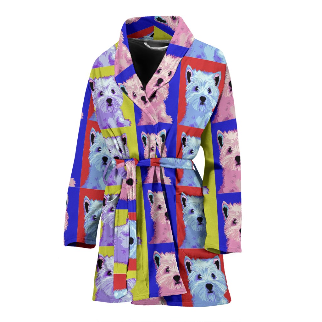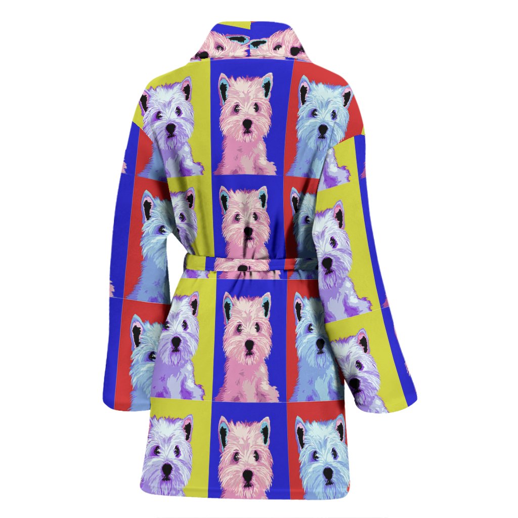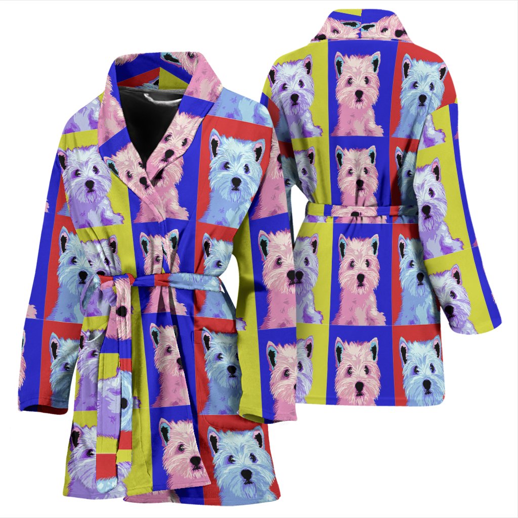 West Highland White Terrier Dog Color Pattern Print Women's Bath Robe-Free Shipping