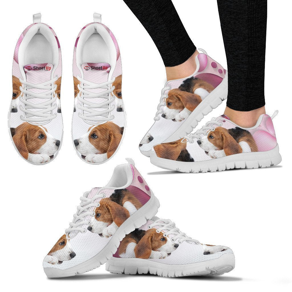 Beagle Pink White Print Running Shoes For Women-Free Shipping