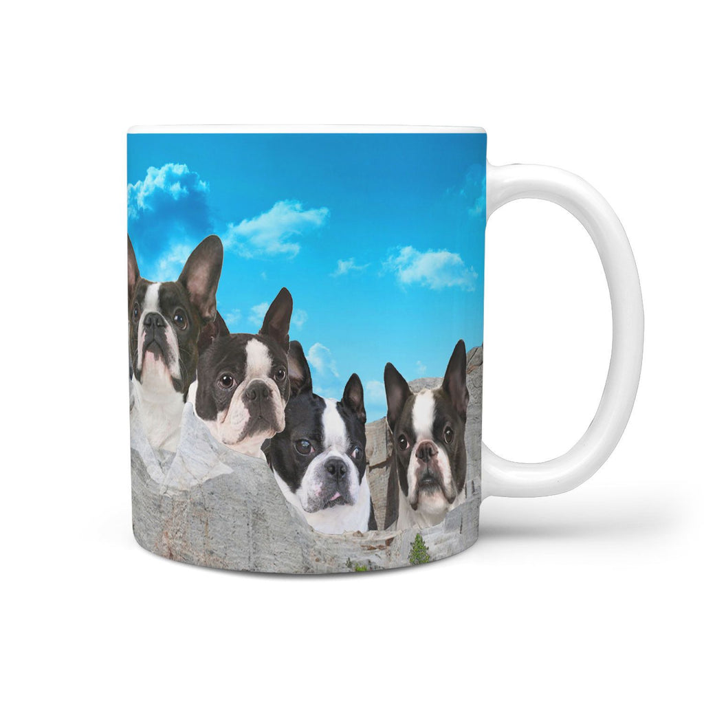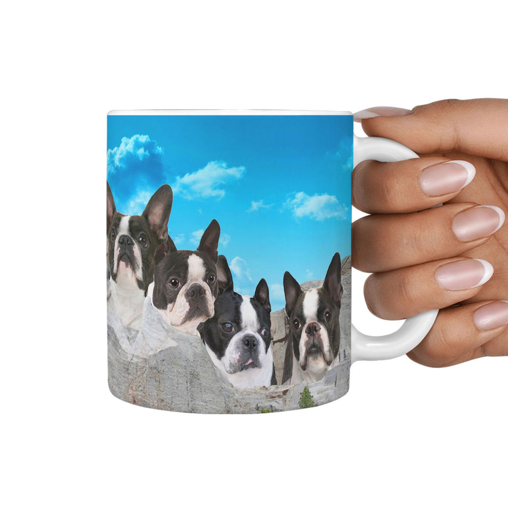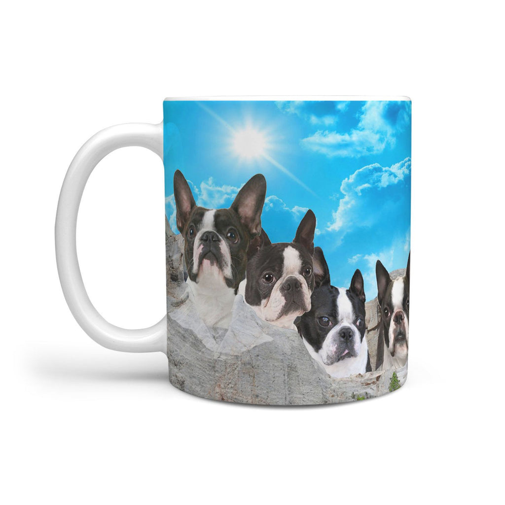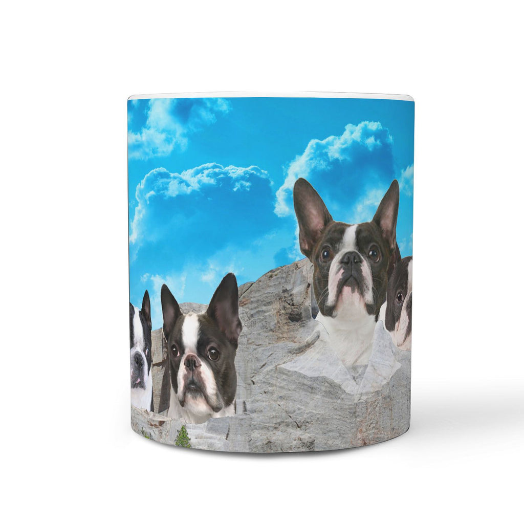 Boston Terrier On Mount Rushmore Print 360 Mug