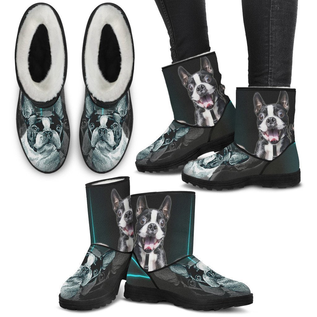 Boston Terrier Print Faux Fur Boots For Women-Free Shipping