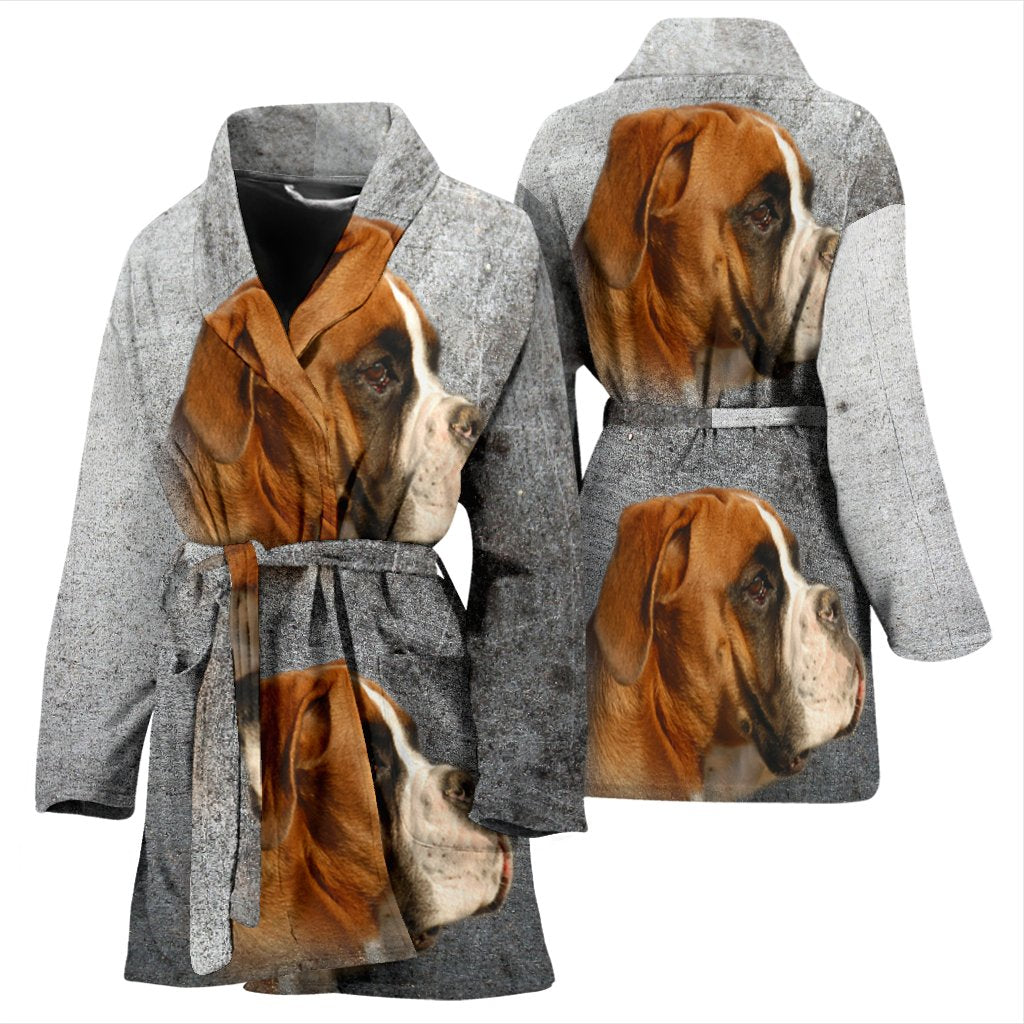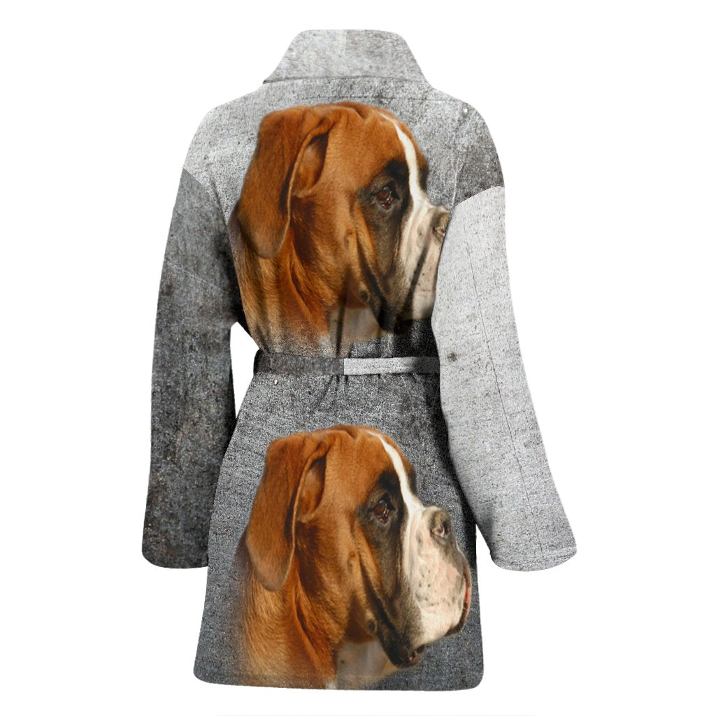 Boxer Dog Print Women's Bath Robe-Free Shipping