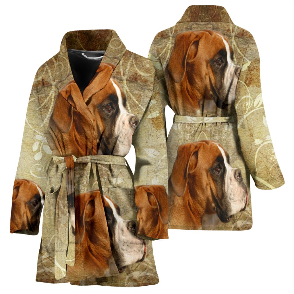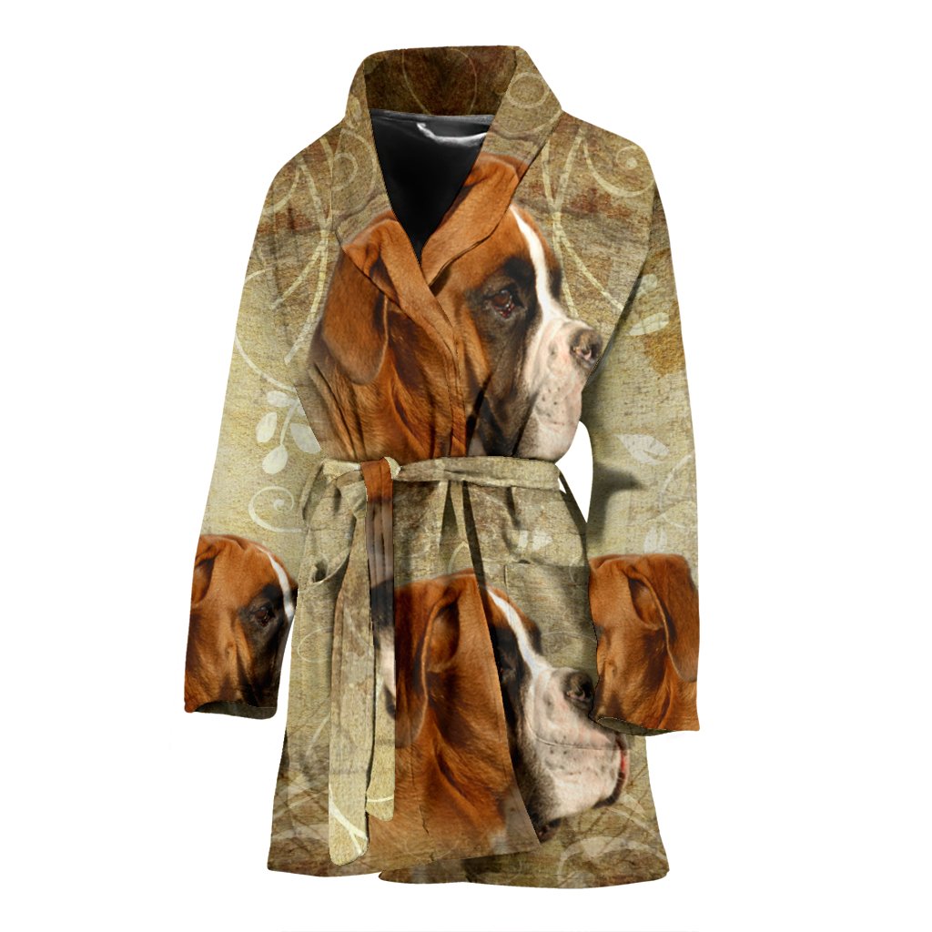 Cute Boxer Dog Print Women's Bath Robe-Free Shipping