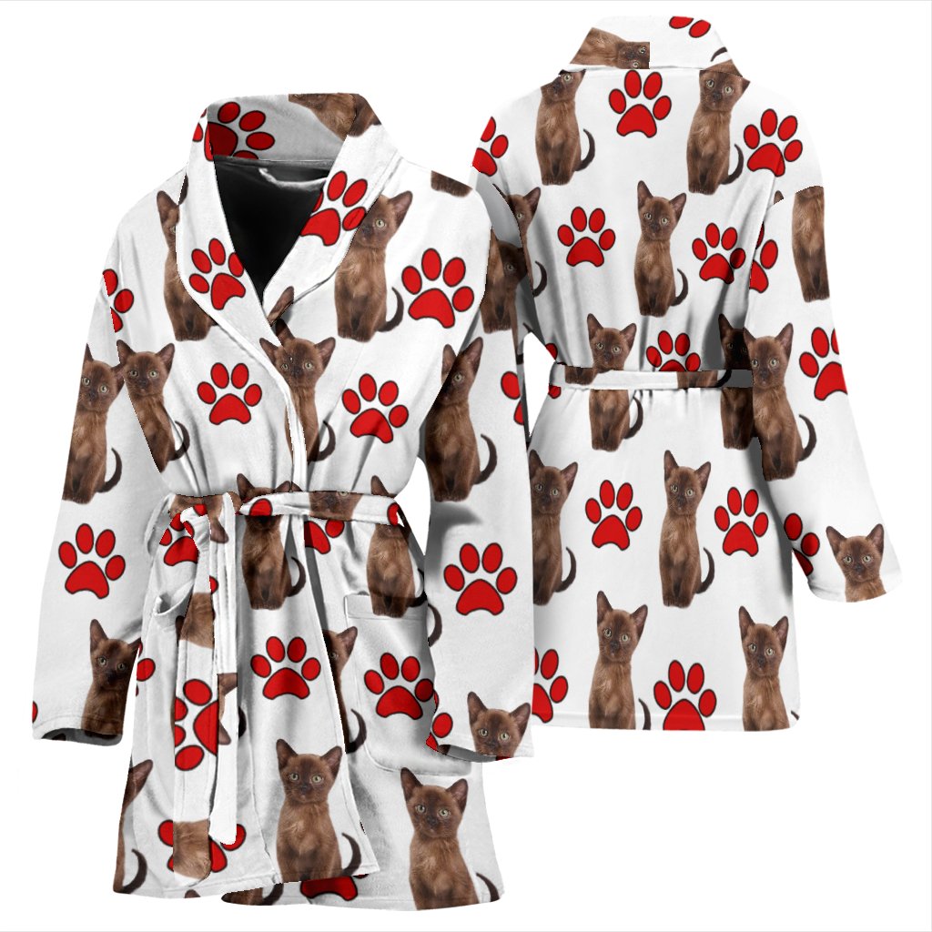 Burmese Cat With Paws Print Women's Bath Robe-Free Shipping