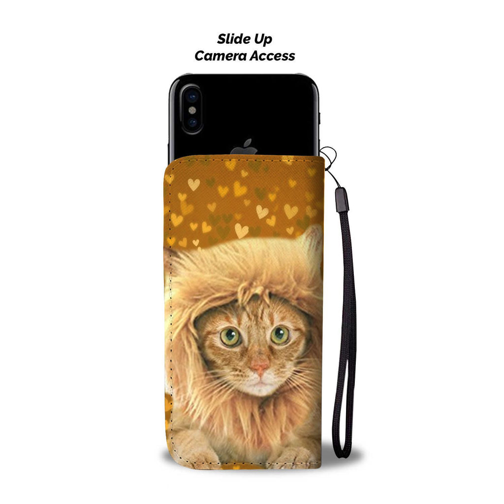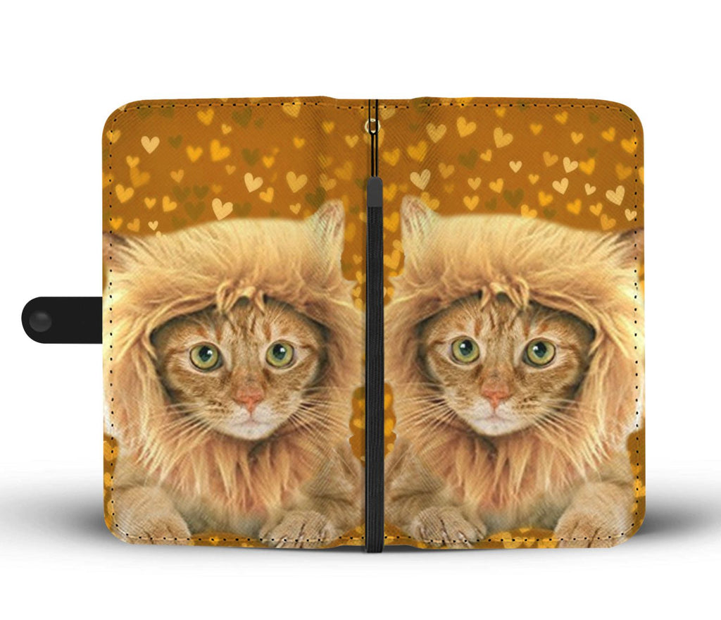 Cute Bengal Cat On Hearts Print Wallet Case-Free Shipping