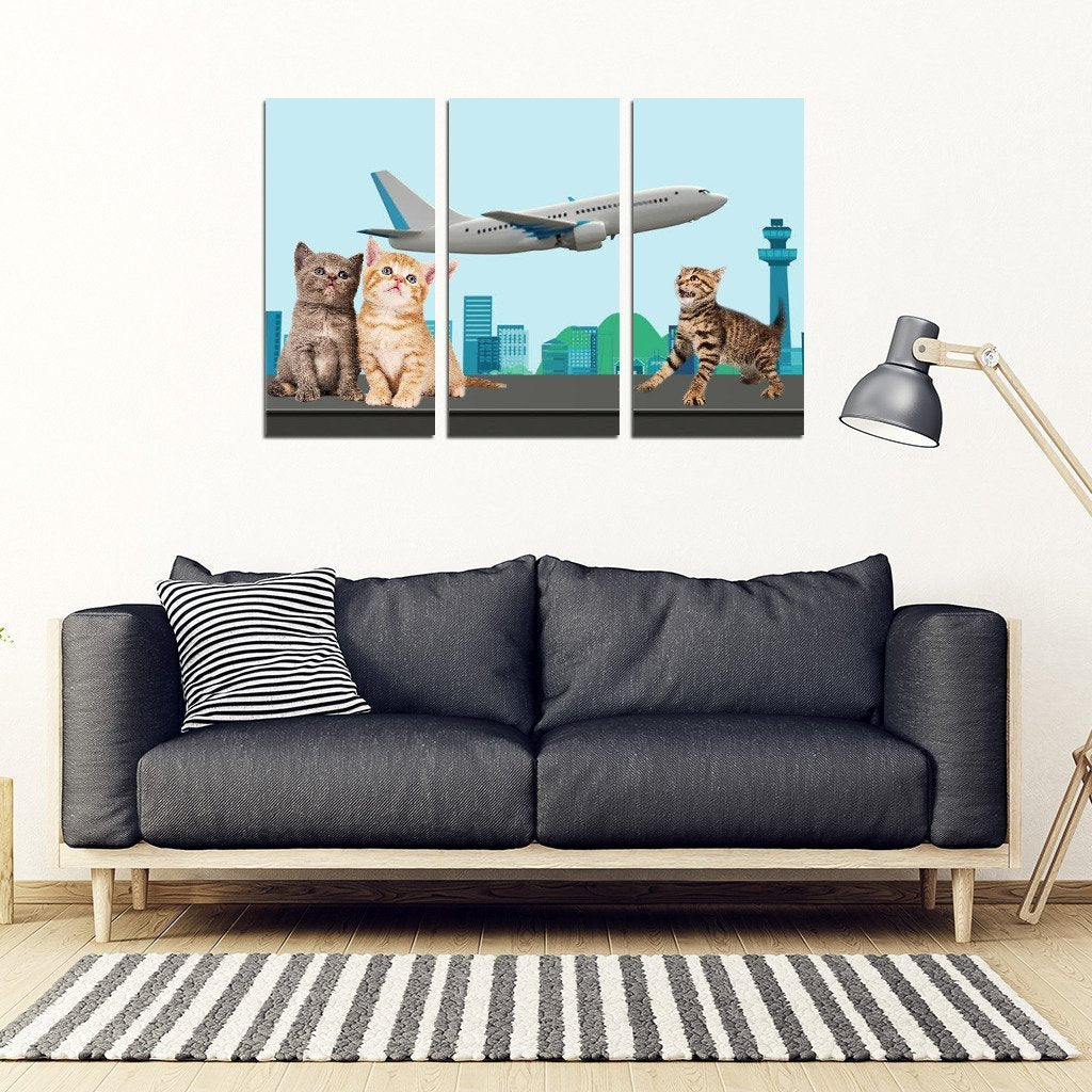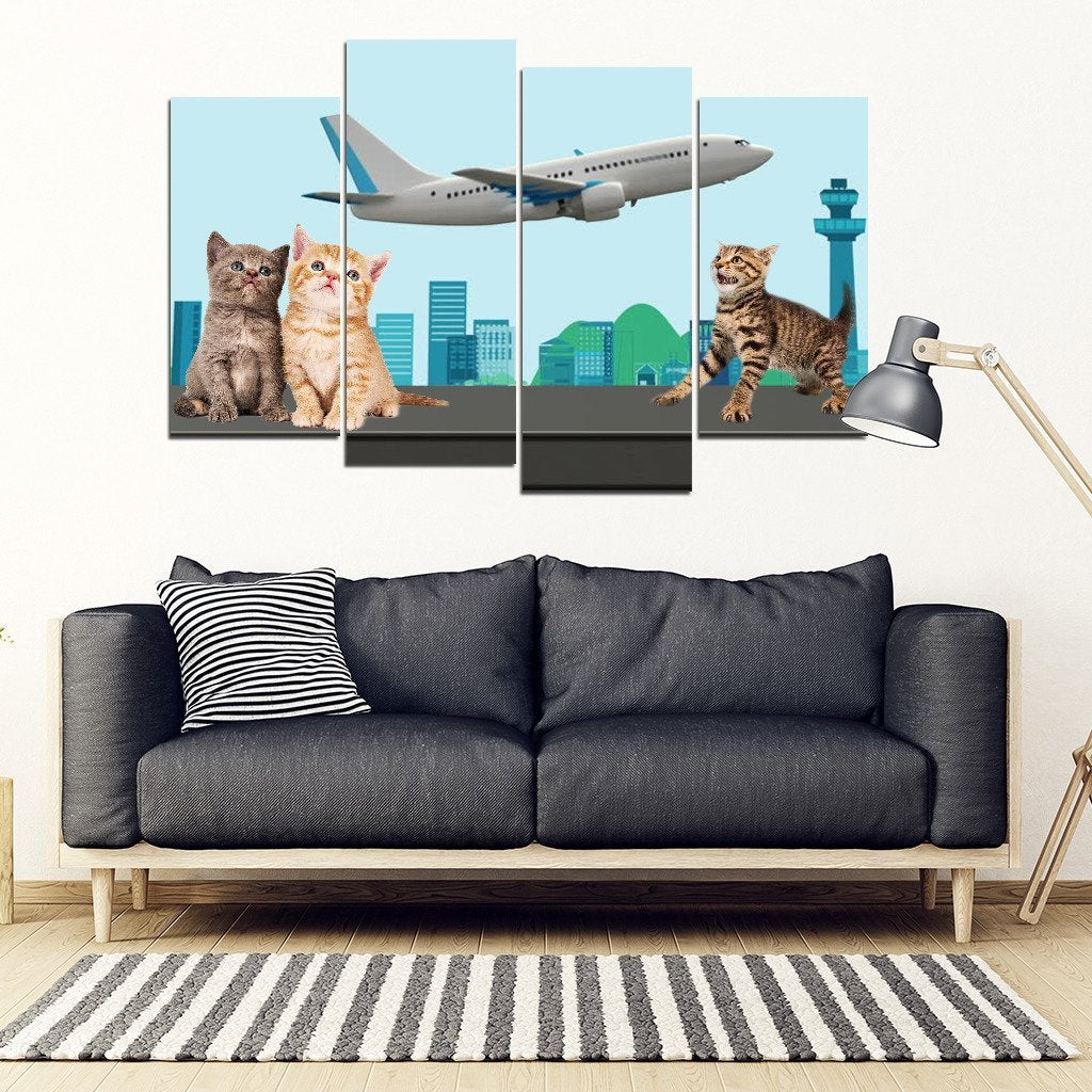 Happy Cats Print-5 Piece Framed Canvas- Free Shipping