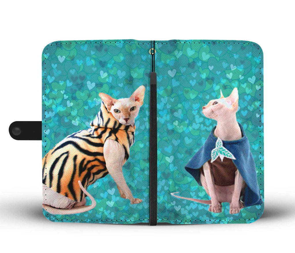 Lovely Sphynx Cat In Costume Print Wallet Case-Free Shipping