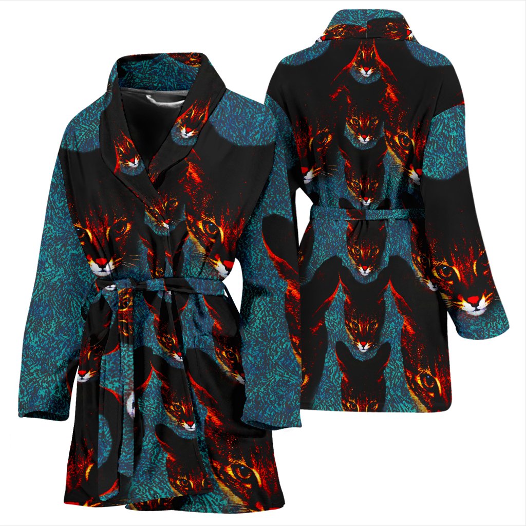Savannah Cat Art Print Women's Bath Robe-Free Shipping
