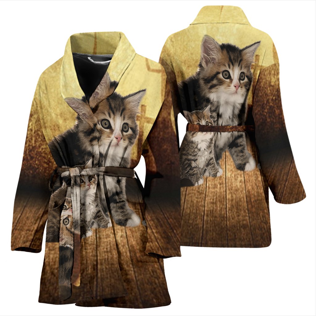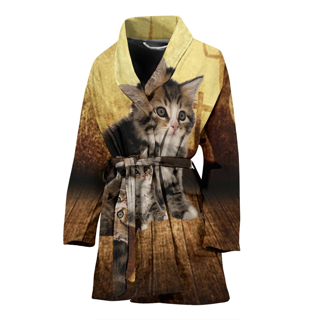 Siberian cat Print Women's Bath Robe-Free Shipping