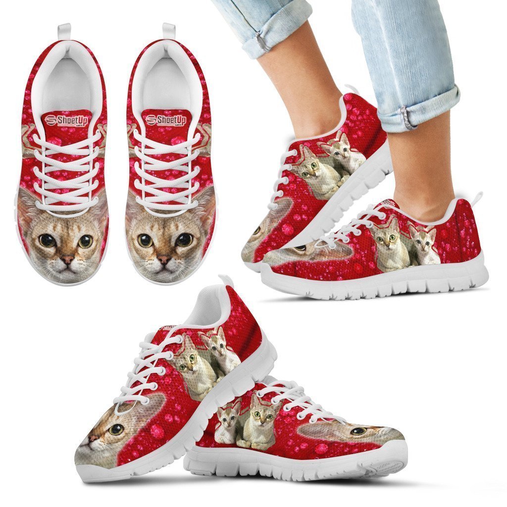 Singapura Cat On Red Print Sneakers For Women- Free Shipping