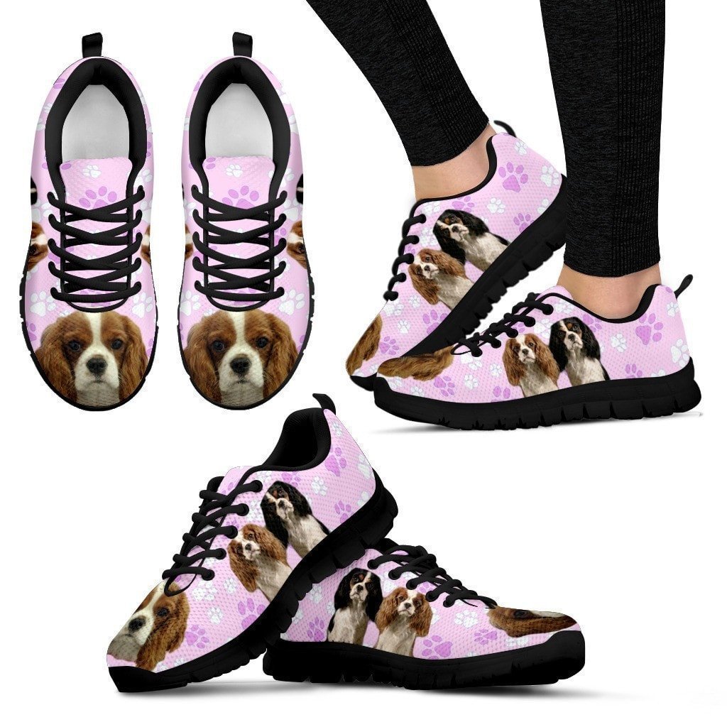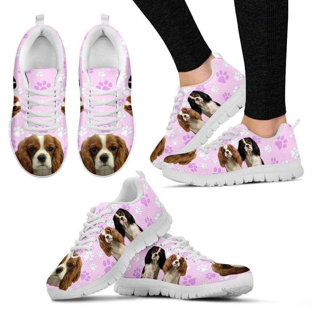 Cavalier King Charles Spaniel In Tri Color Print Running Shoe For Women(White/Black)- Free Shipping-Paww-Printz-Merchandise