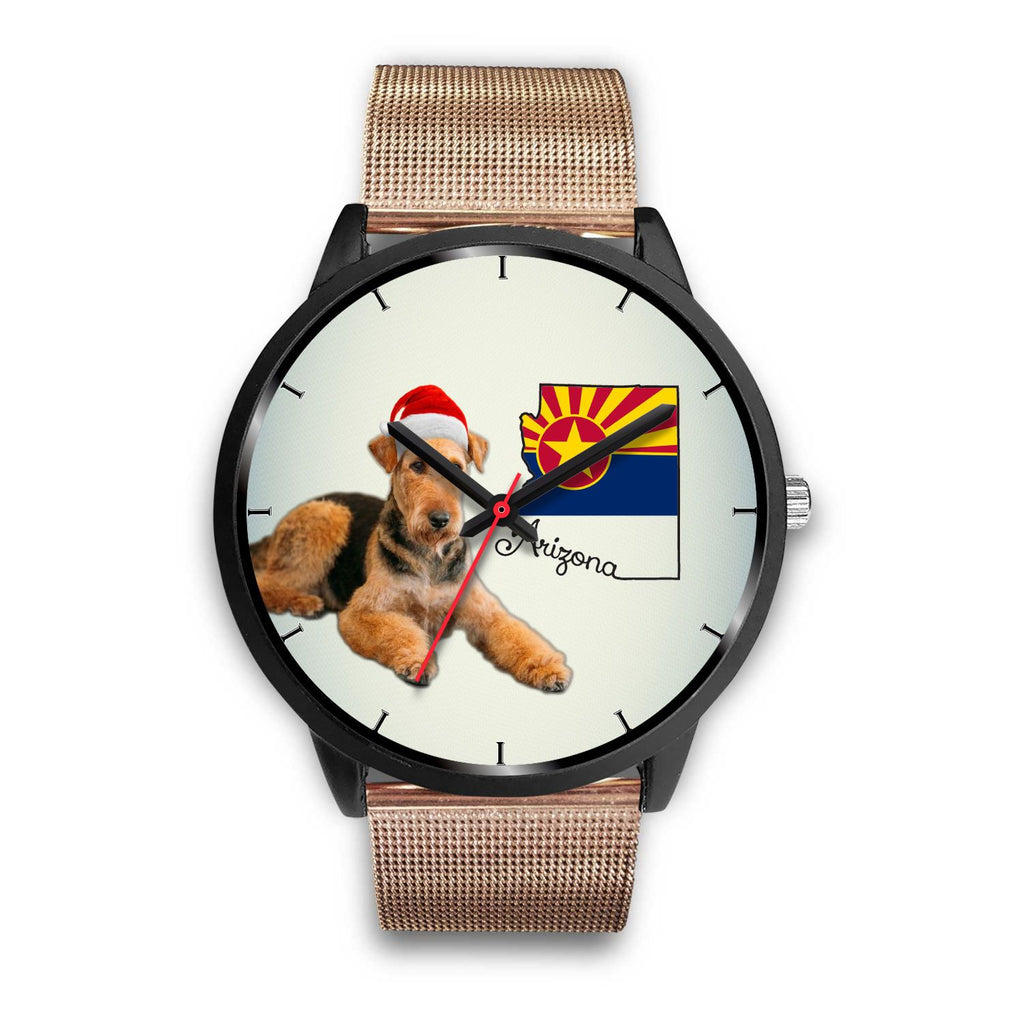 Airedale Terrier On Christmas Arizona Wrist Watch-Free Shipping