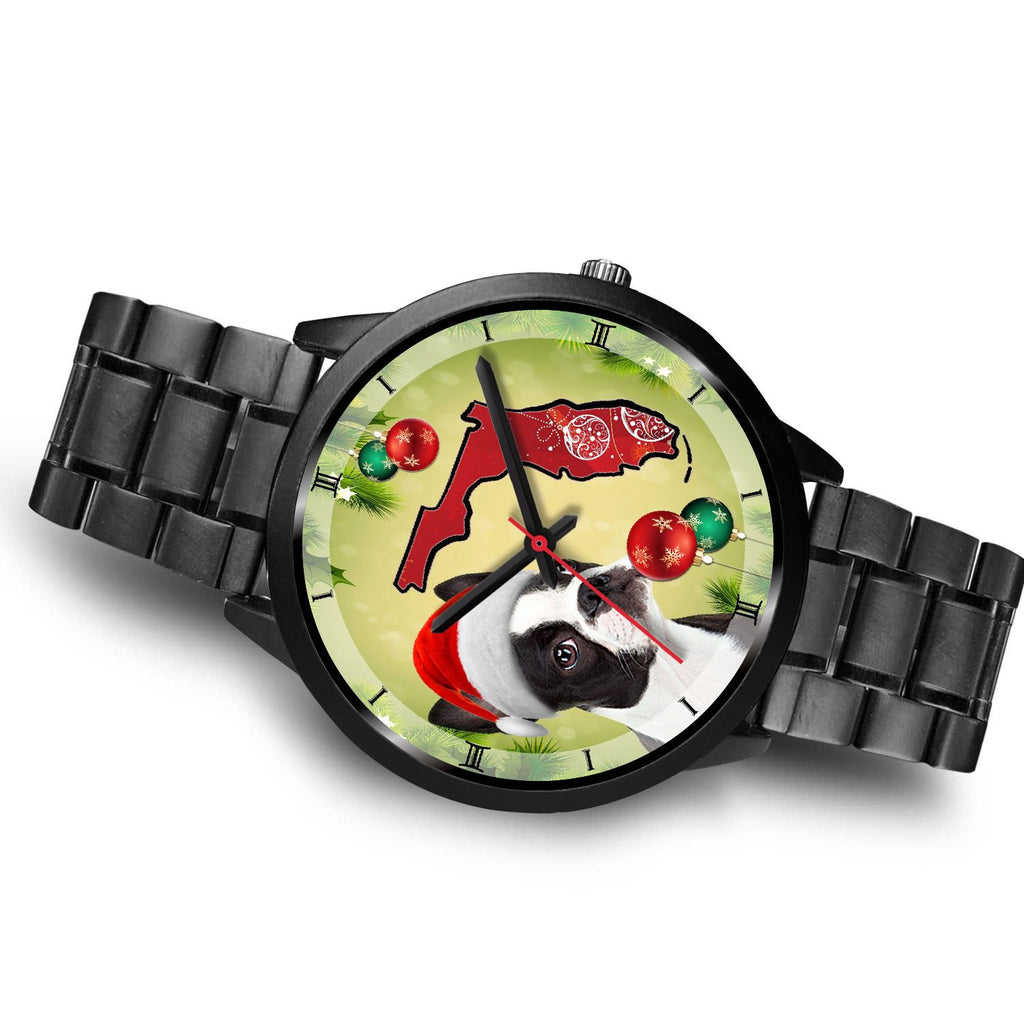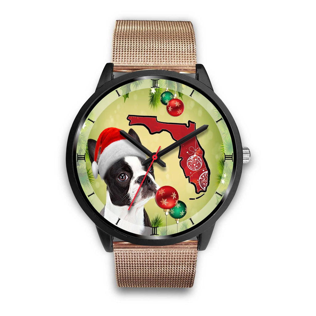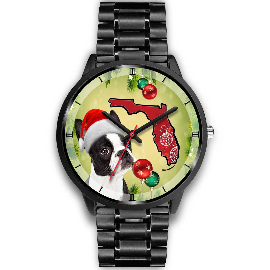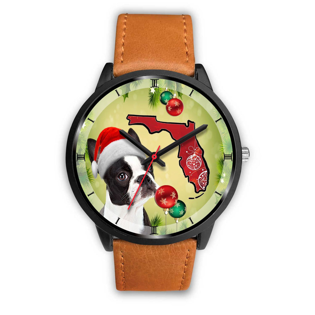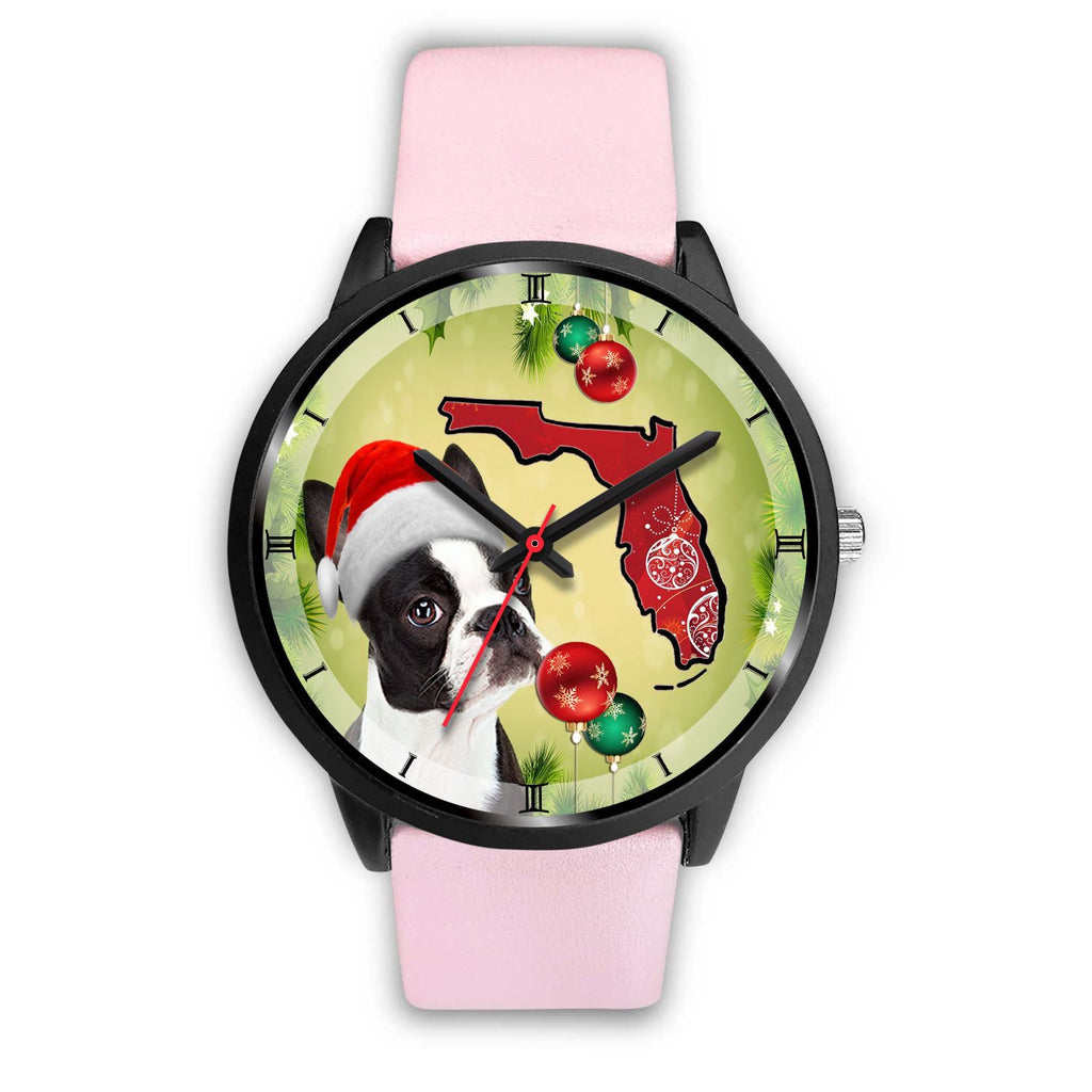 Boston Terrier On Christmas Florida Wrist Watch-Free Shipping