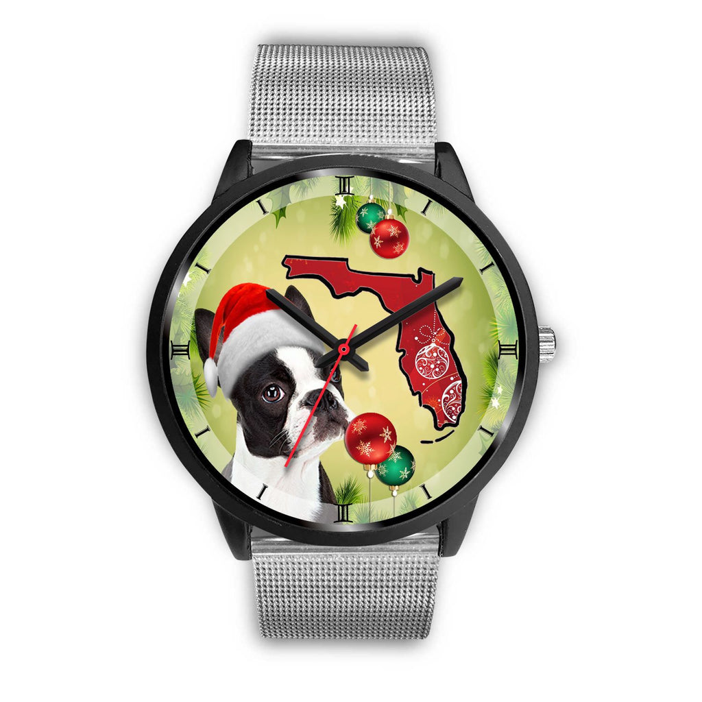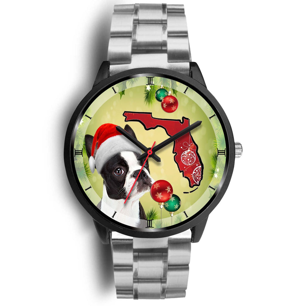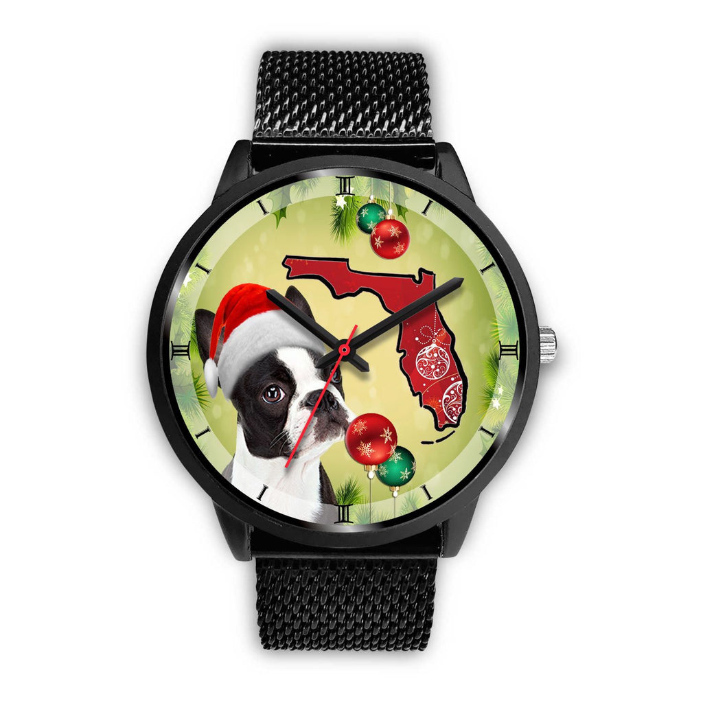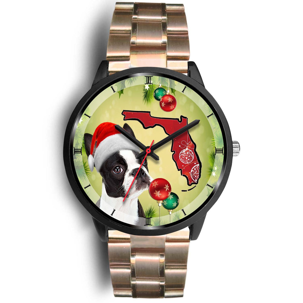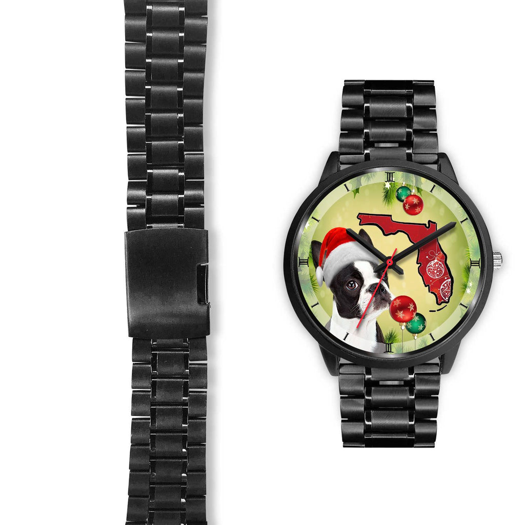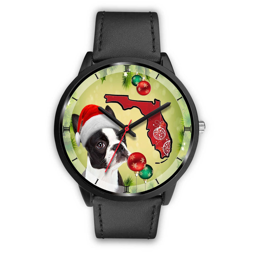 Boston Terrier On Christmas Florida Wrist Watch-Free Shipping
