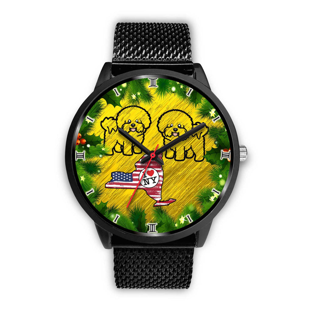 Cute Bichon Fries Dog Art New York Christmas Special Wrist Watch-Free Shipping