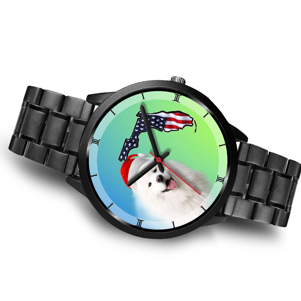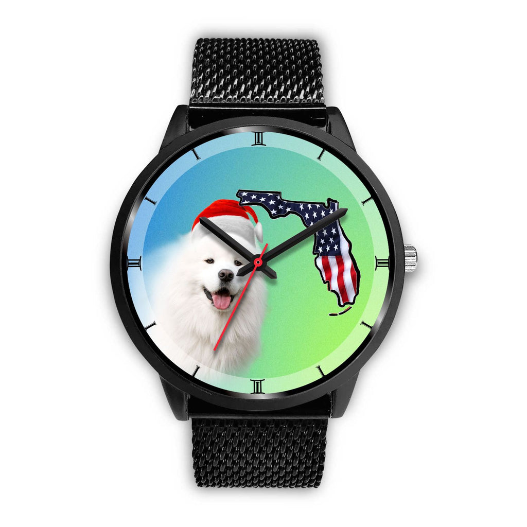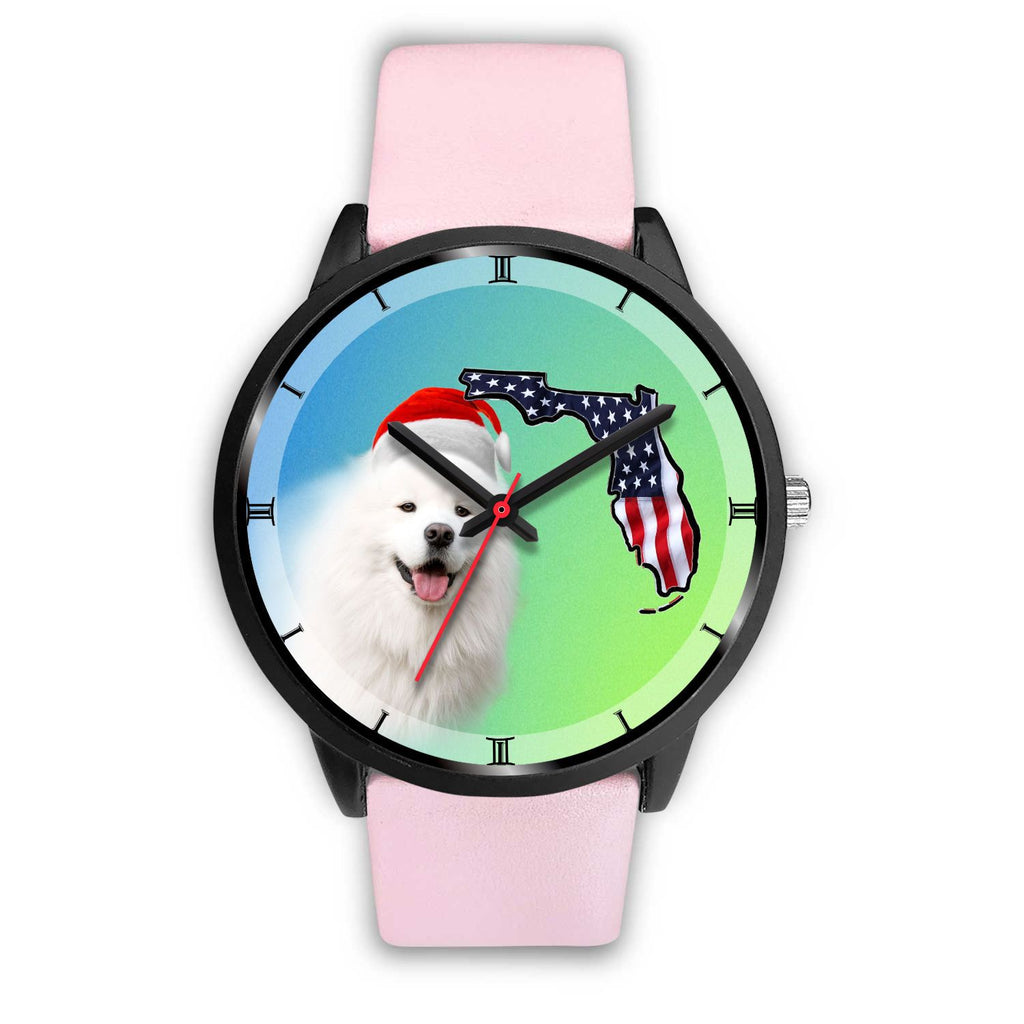 Samoyed Dog On Christmas Florida Black Wrist Watch-Free Shipping