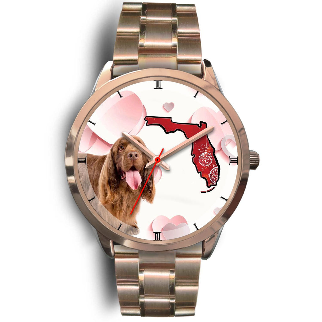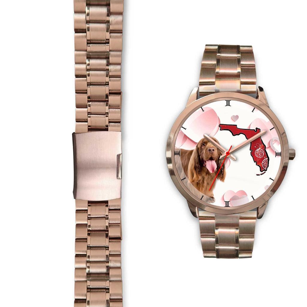 Sussex Spaniel On Christmas Florida Golden Wrist Watch-Free Shipping