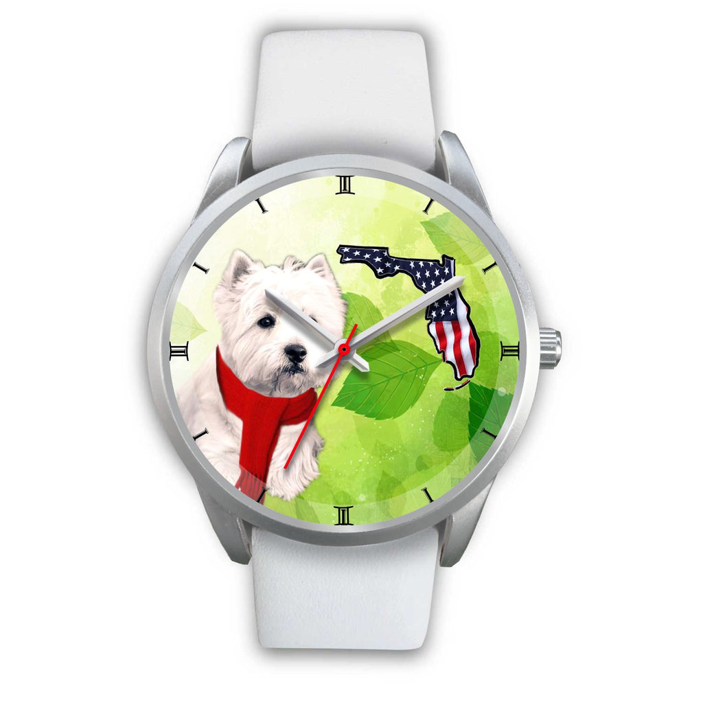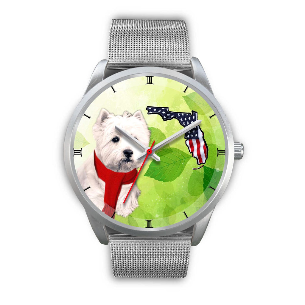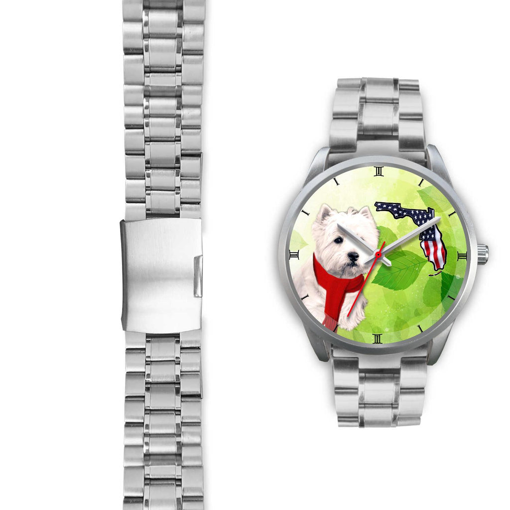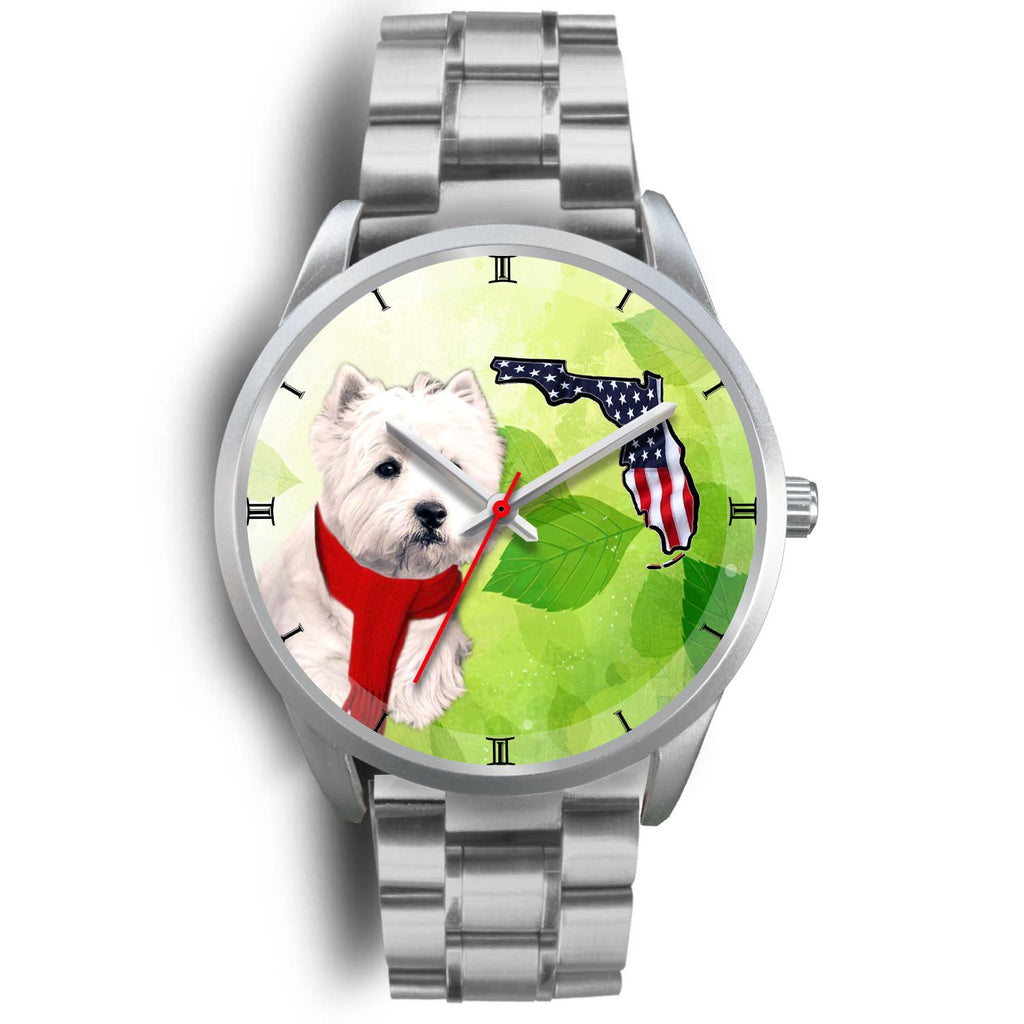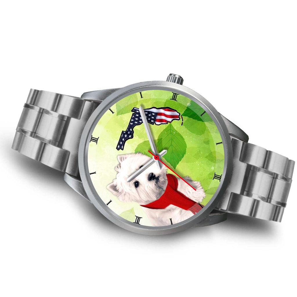 Westie On Christmas Florida Silver Wrist Watch-Free Shipping