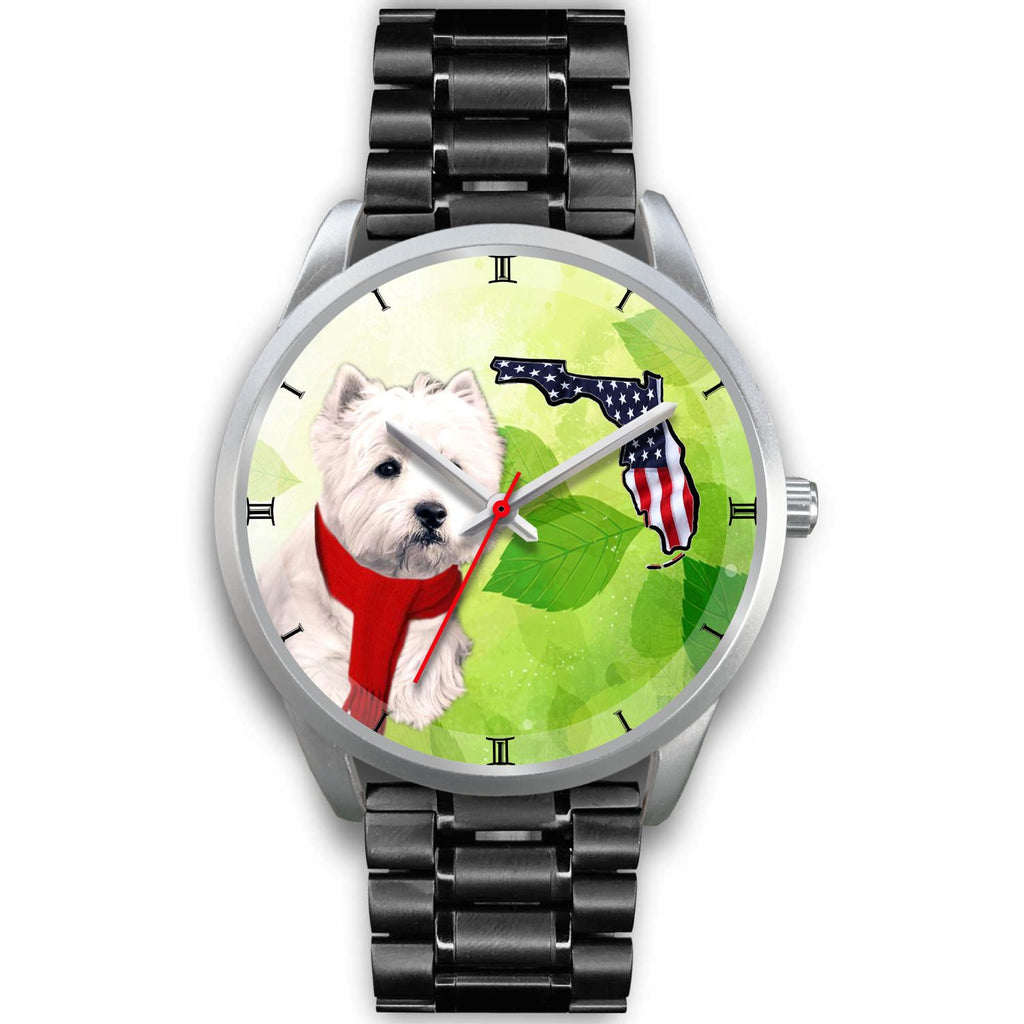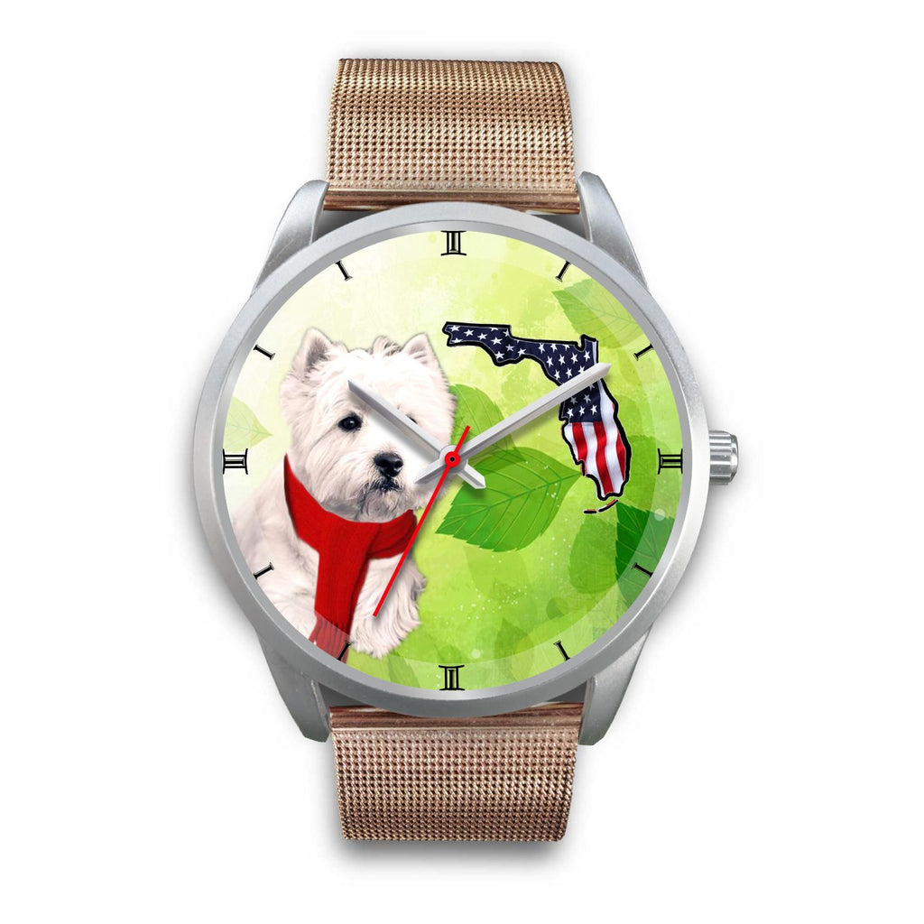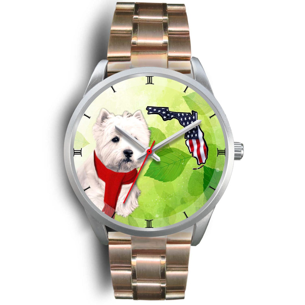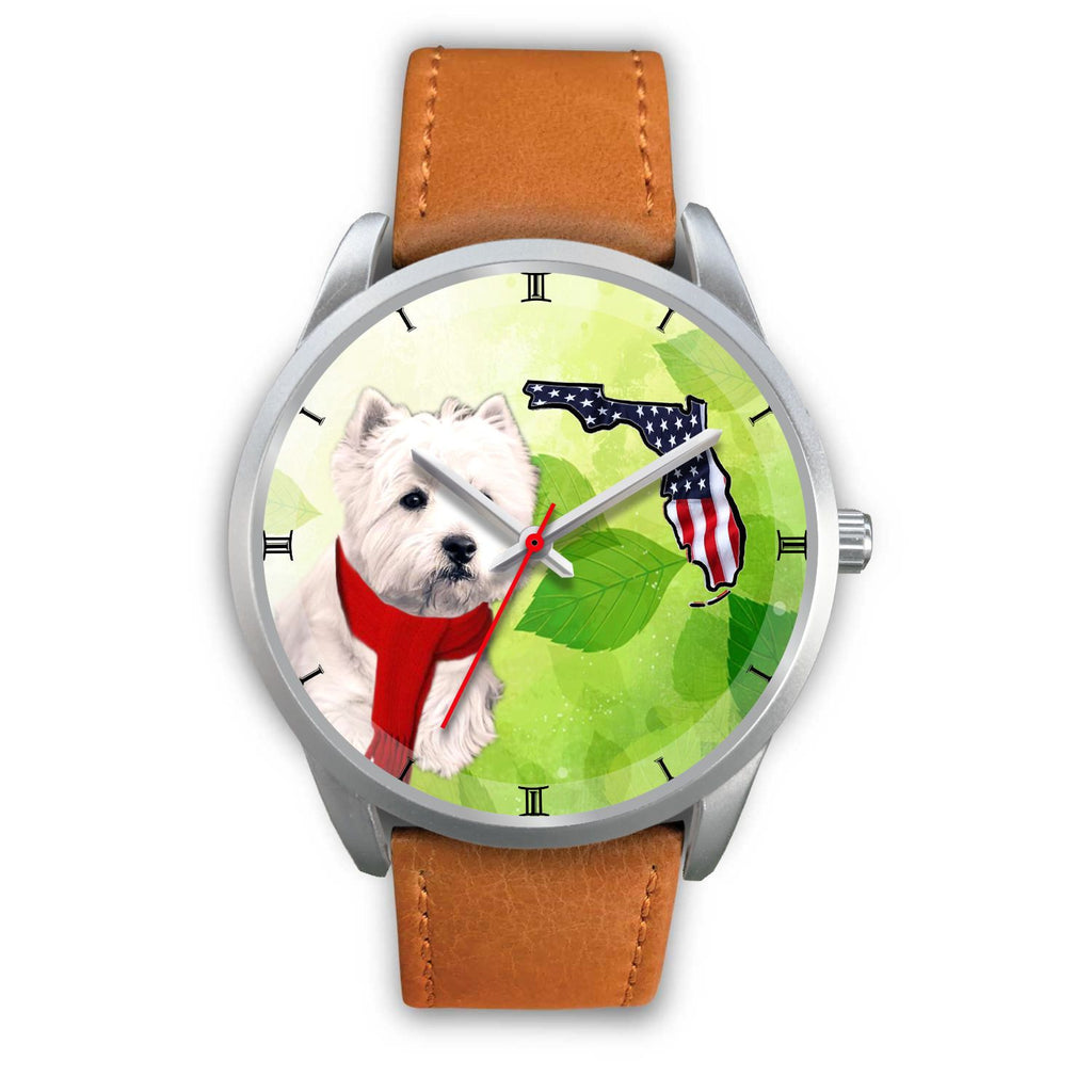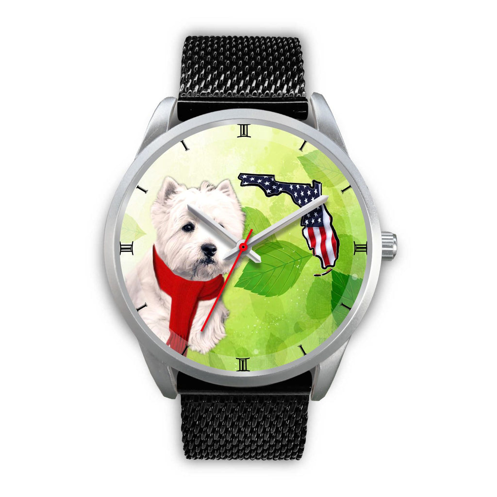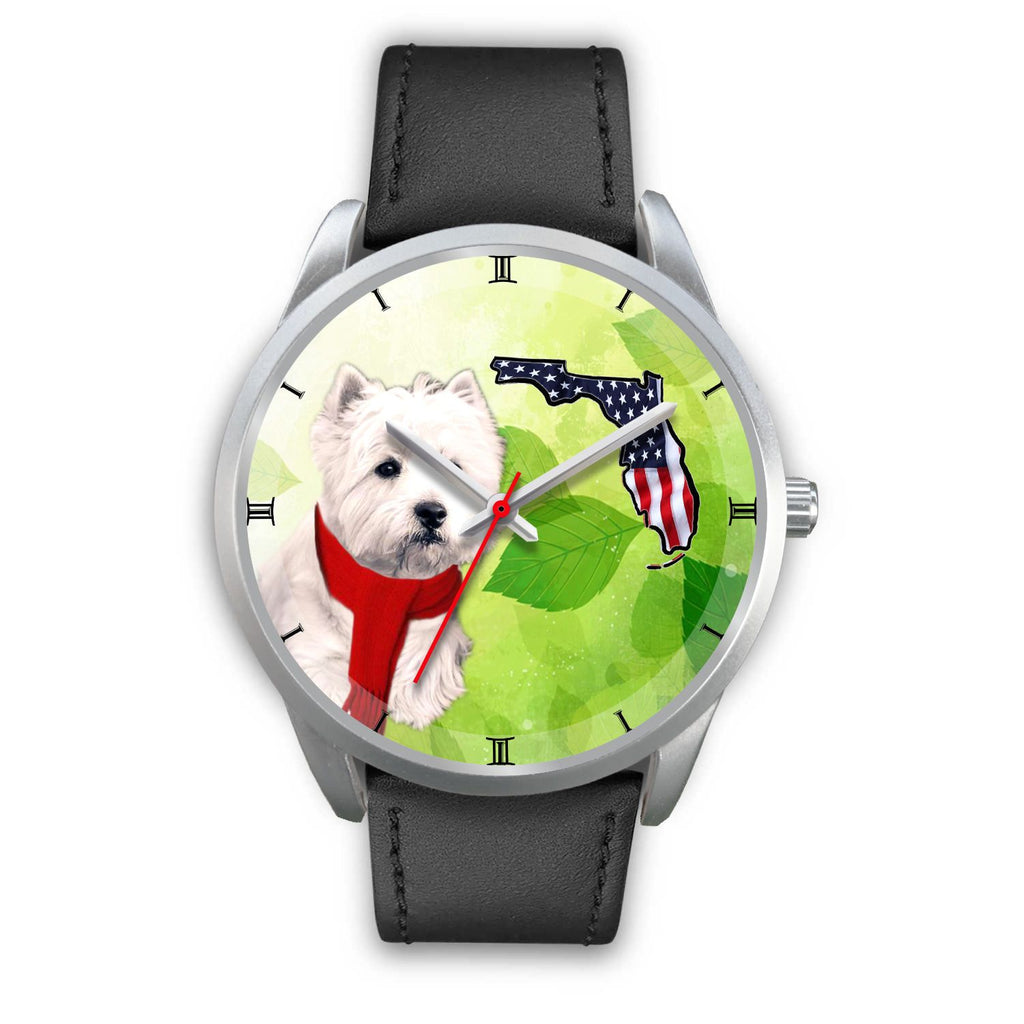 Westie On Christmas Florida Silver Wrist Watch-Free Shipping