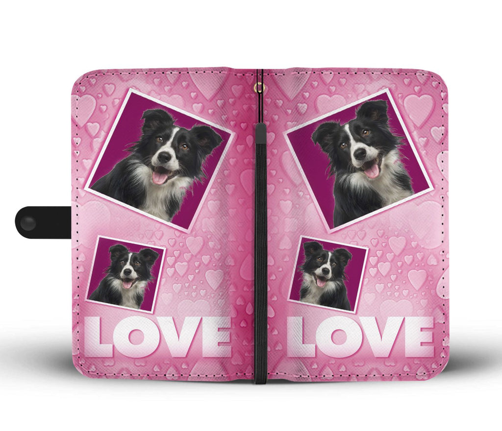 Border Collie Dog with Love Print Wallet Case-Free Shipping