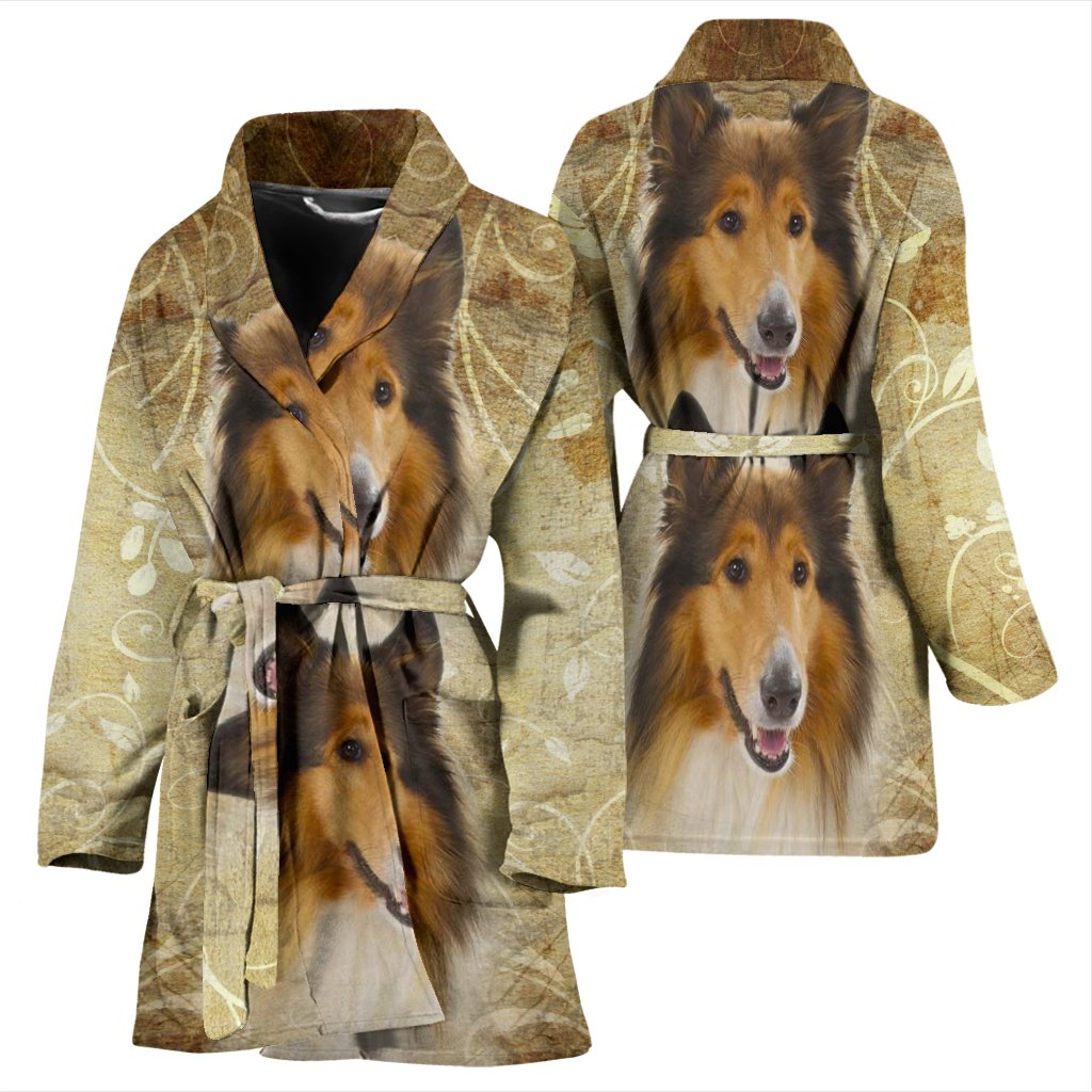 Lovely Collie Print Women's Bath Robe-Free Shipping