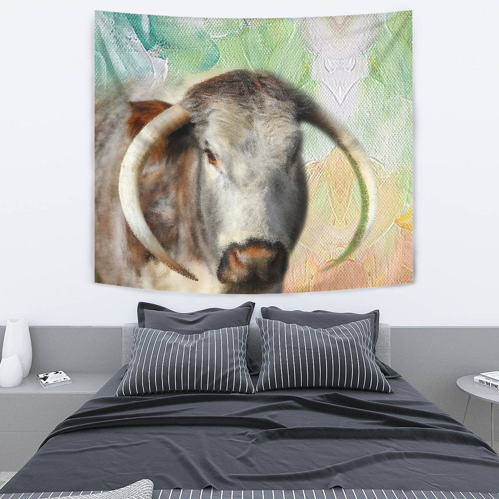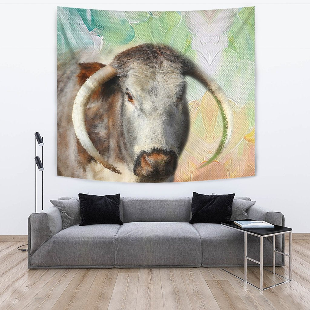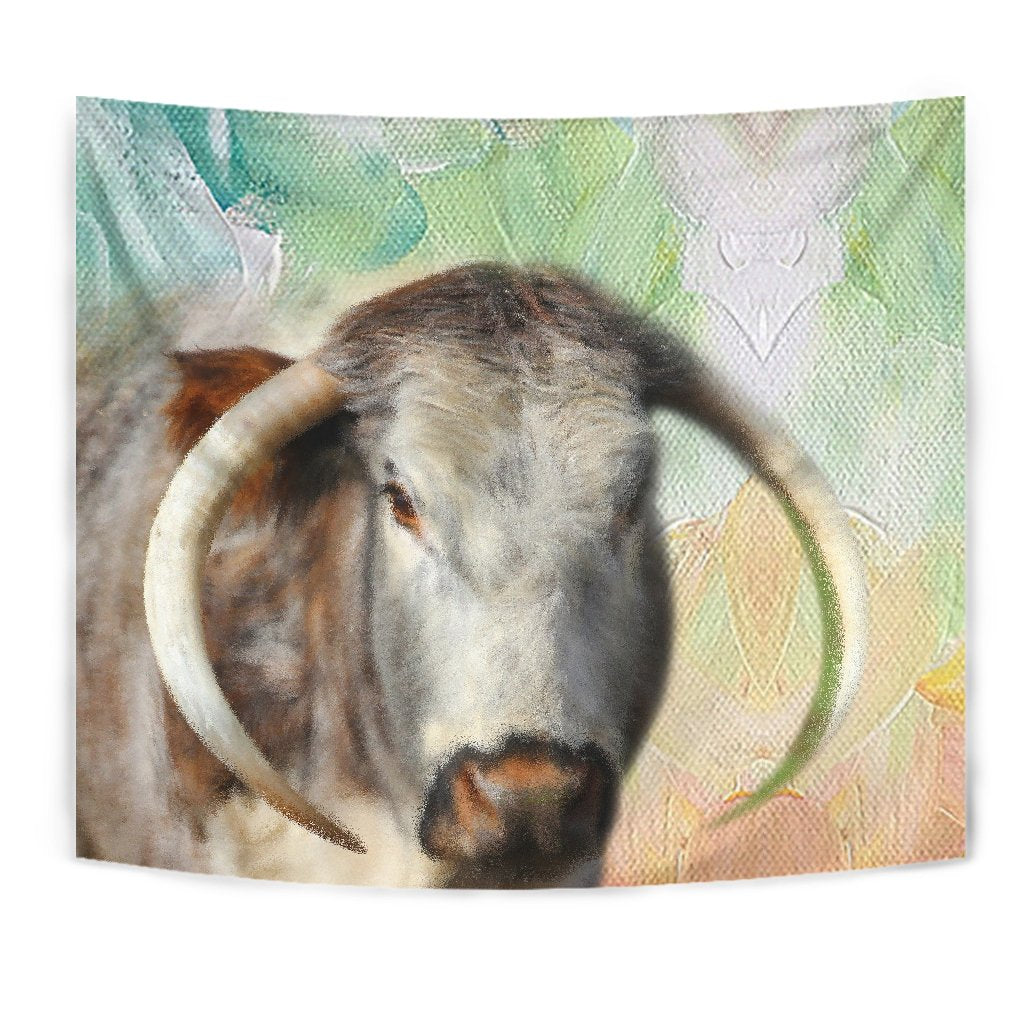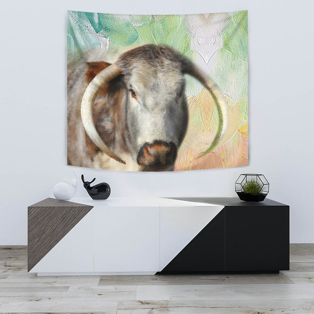 Amazing English Longhorn Cattle (Cow) Print Tapestry