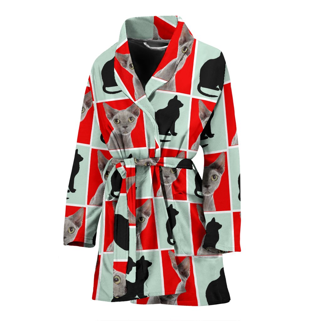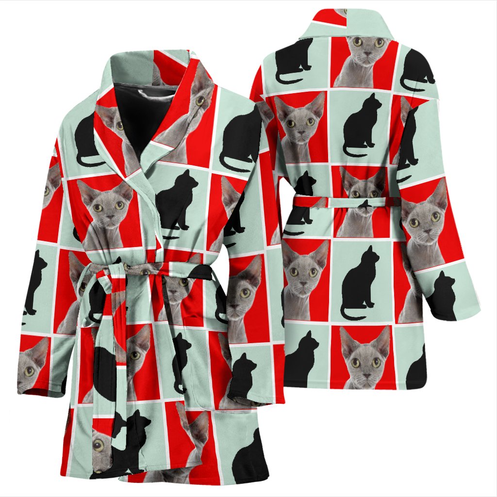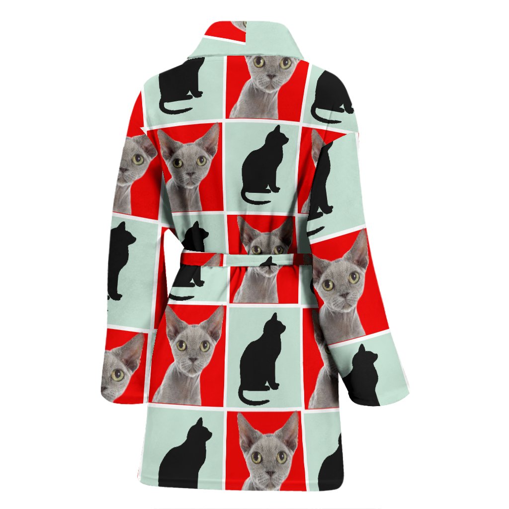 Devon Rex Cat Print Women's Bath Robe-Free Shipping