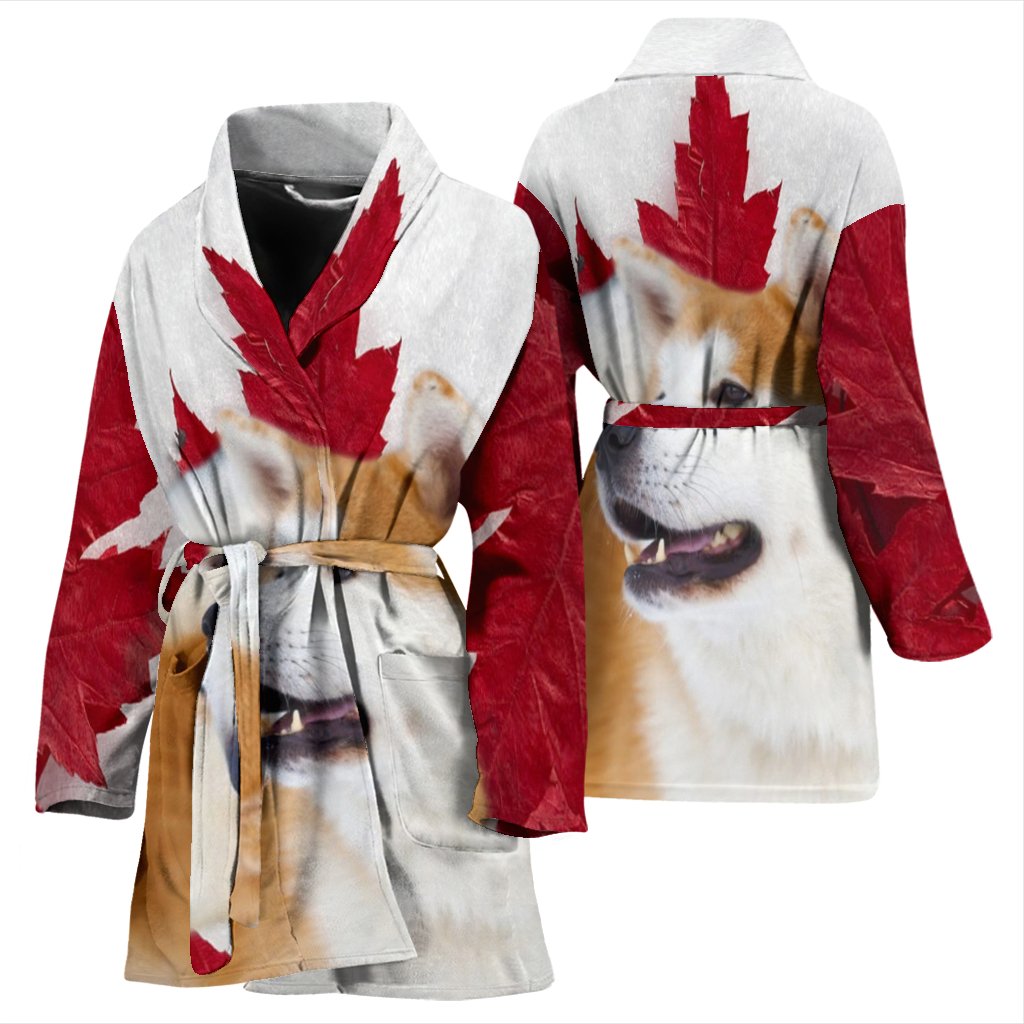Akita Inu Dog Print Women's Bath Robe-Free Shipping