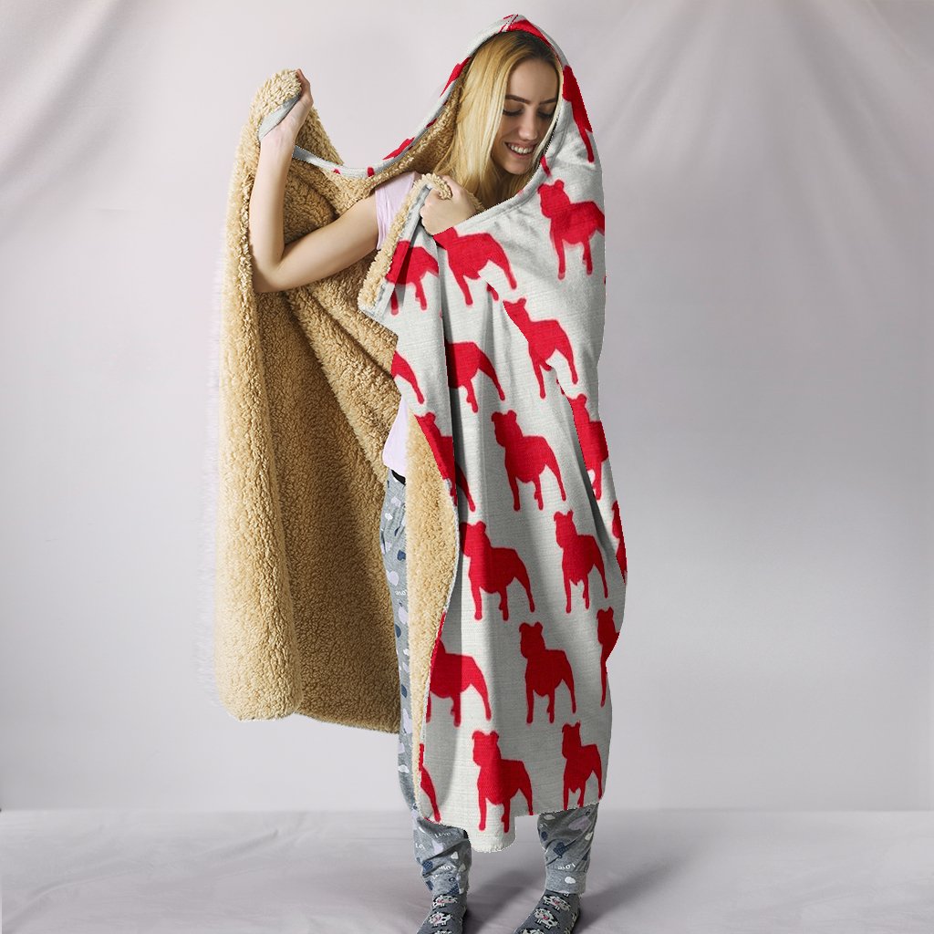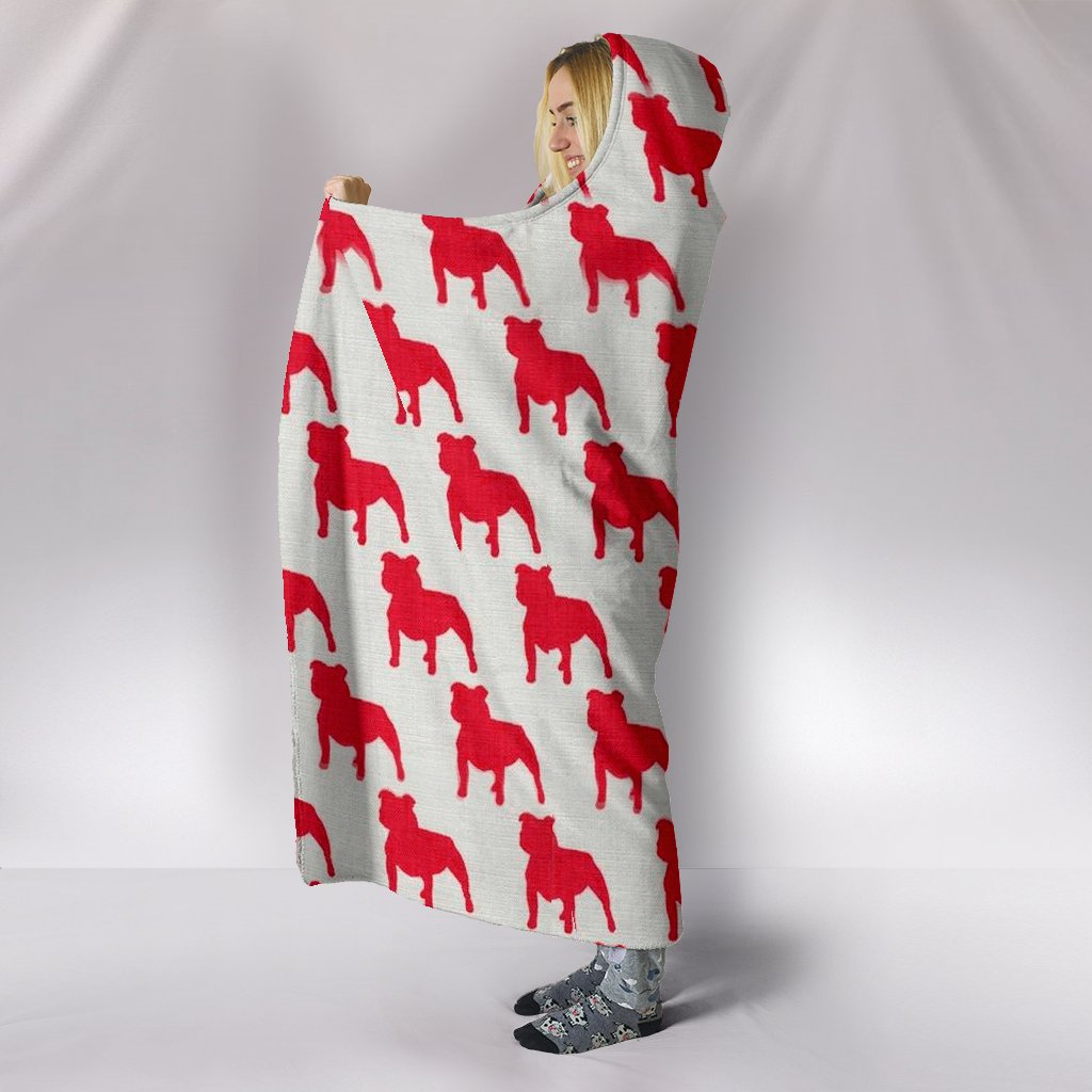 American Staffordshire Terrier Dog Pattern Print Hooded Blanket