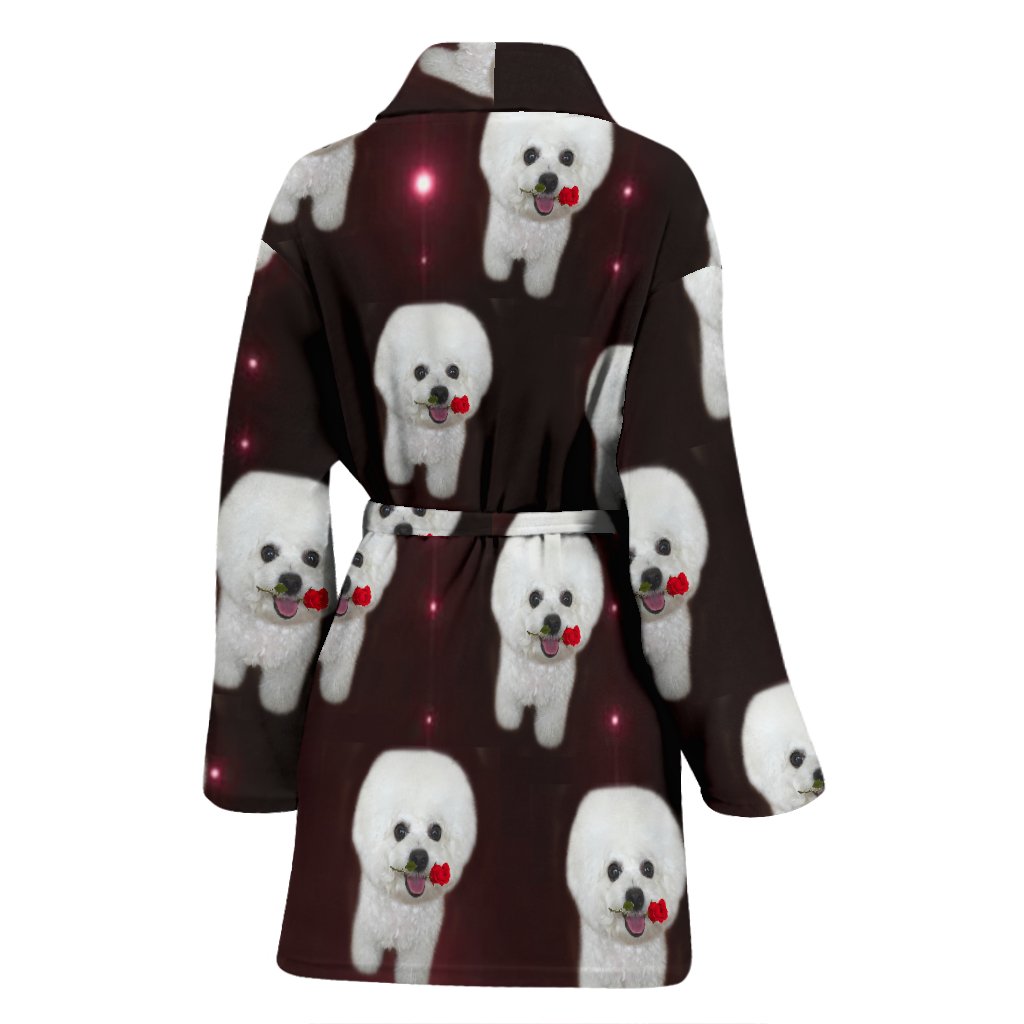 Bichon Frise Dog Print Women's Bath Robe-Free Shipping