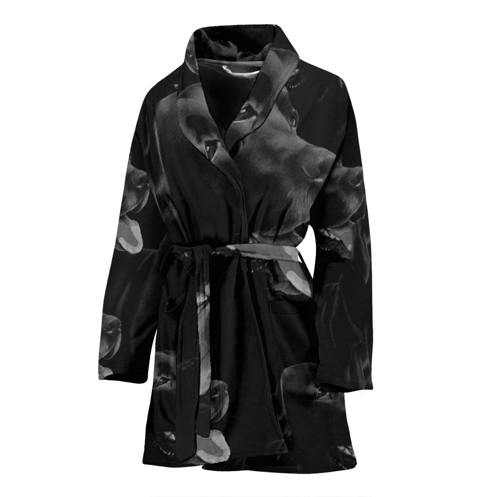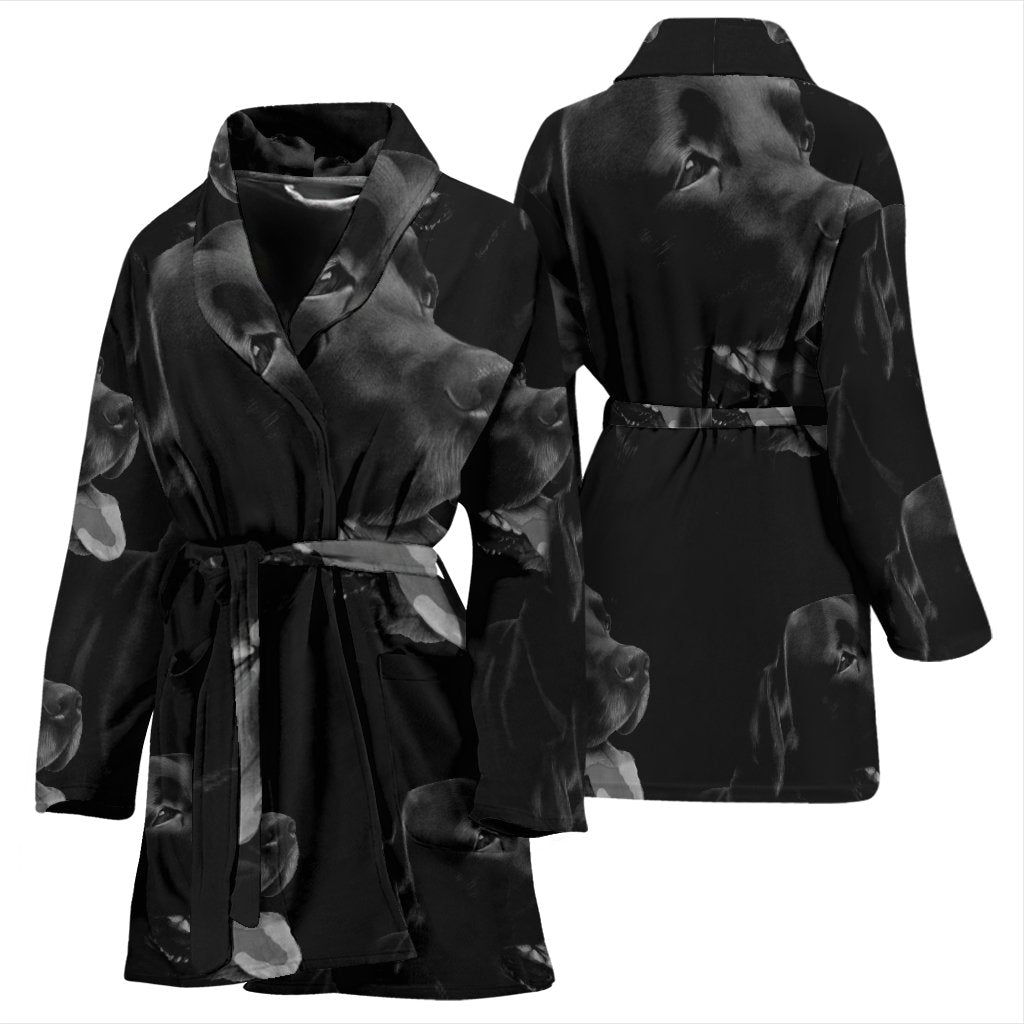 Black Labrador Dog Art Print Women's Bath Rob-Free Shipping